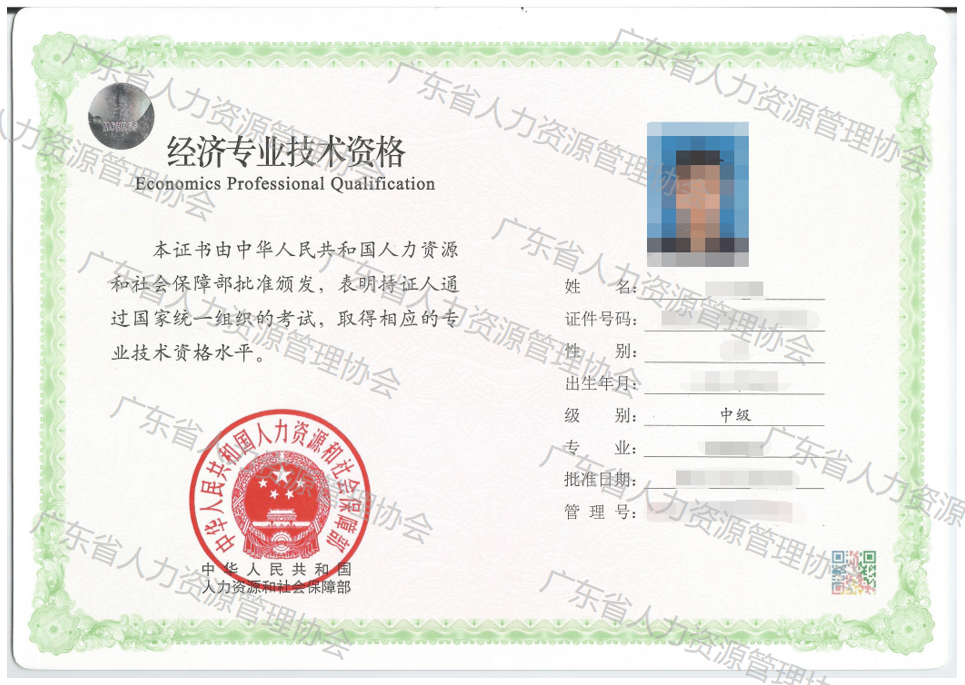经济专业技术资格证书(职称证书)-范本
