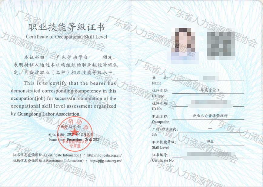 【广东省】职业技能等级证书-范本