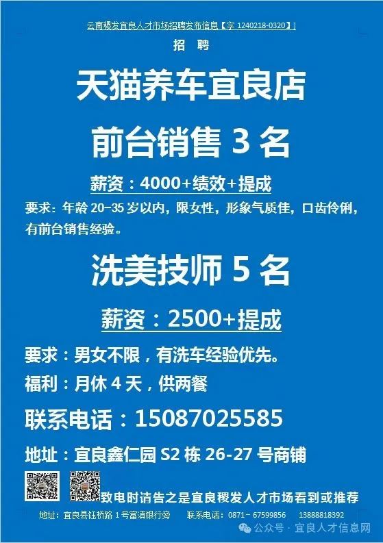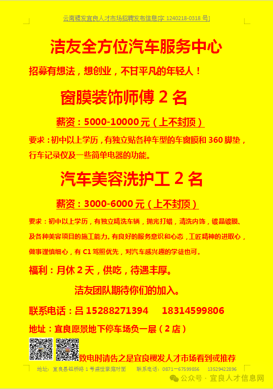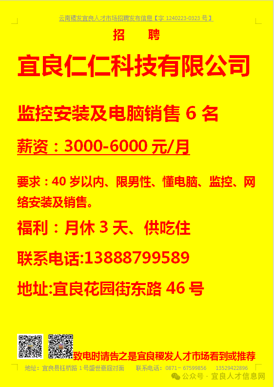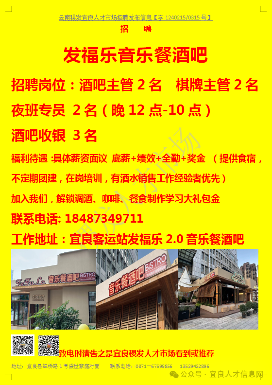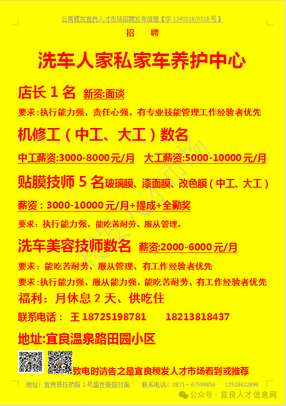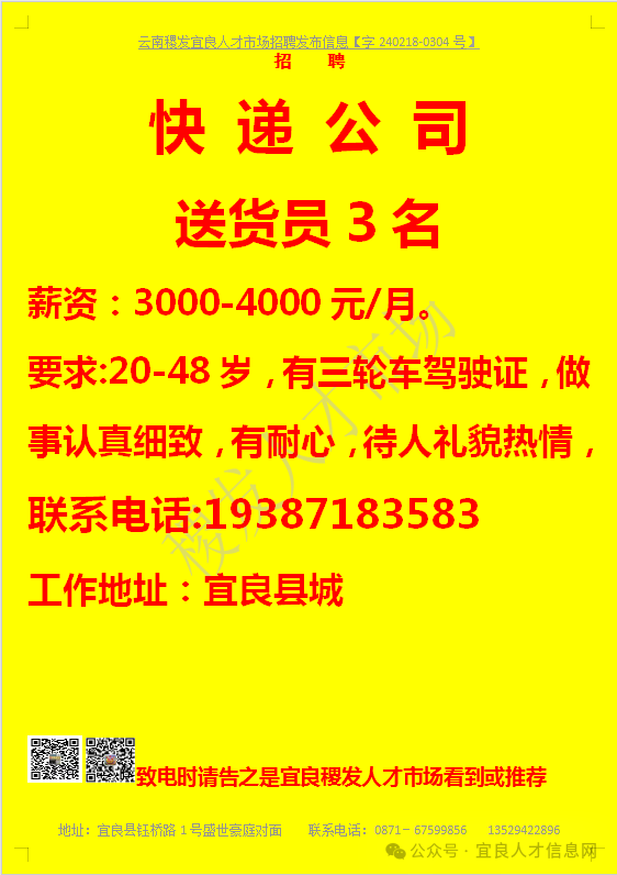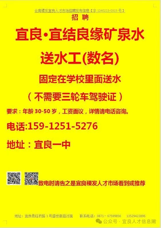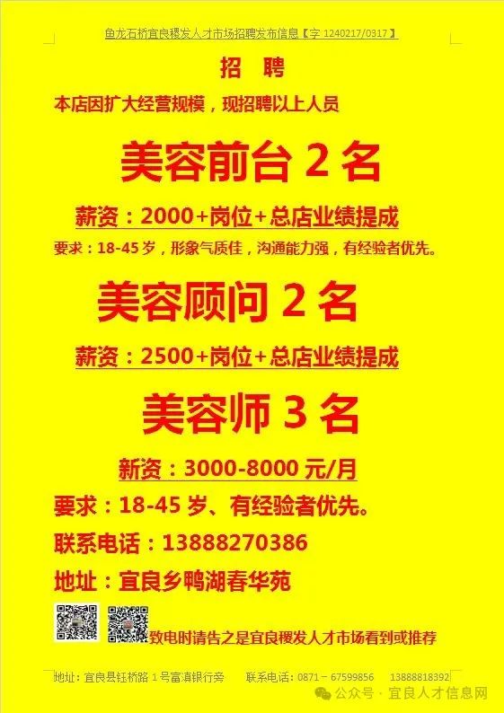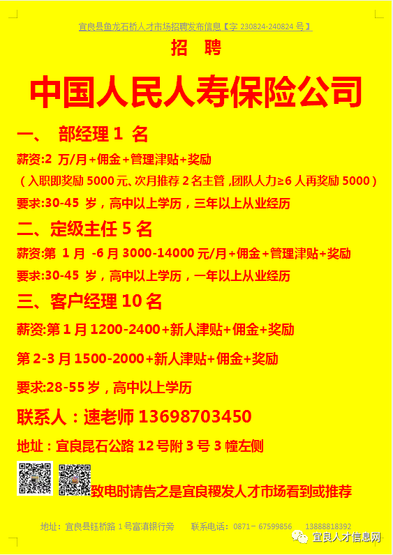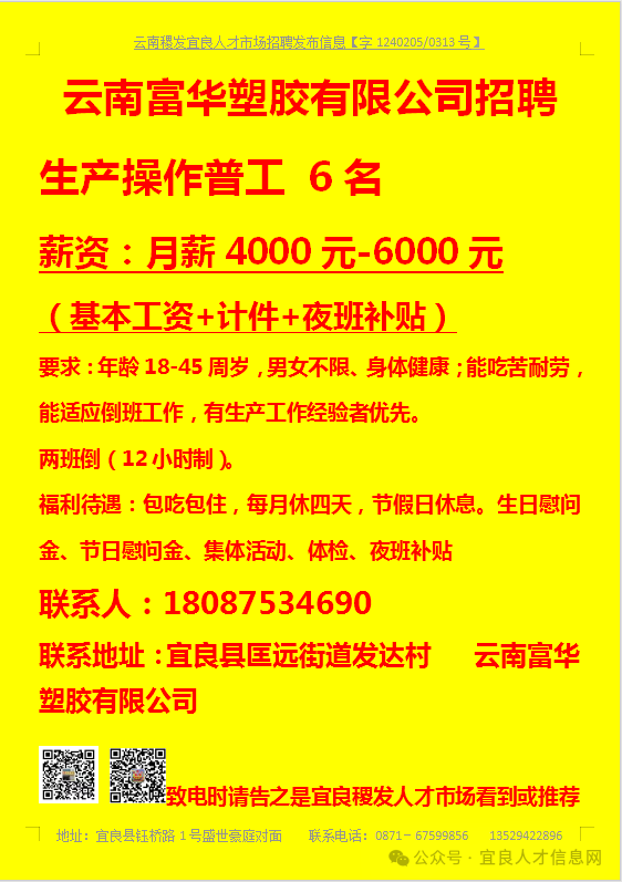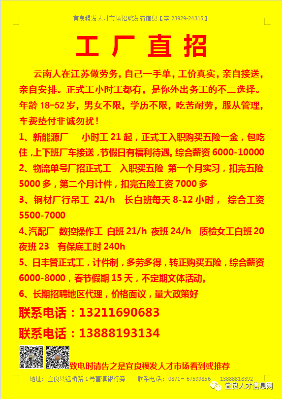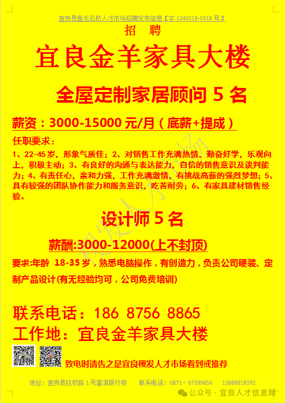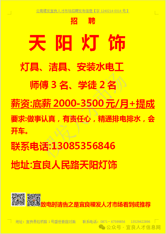 信息发布咨询地址:宜良稷发人才市场一楼大厅