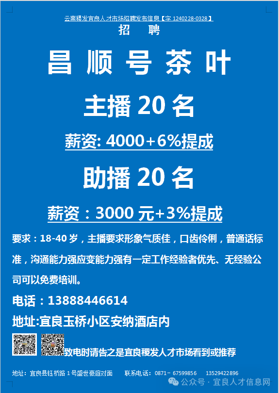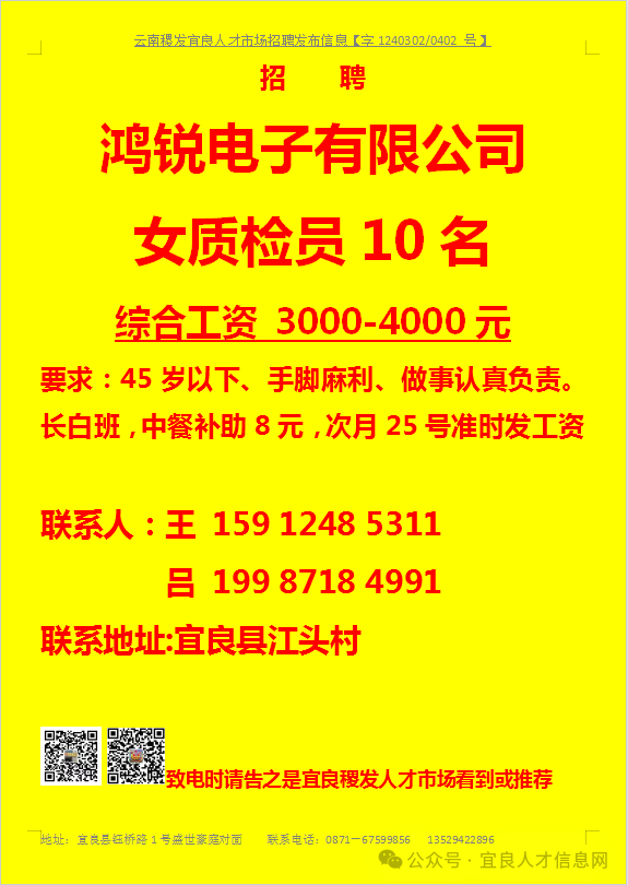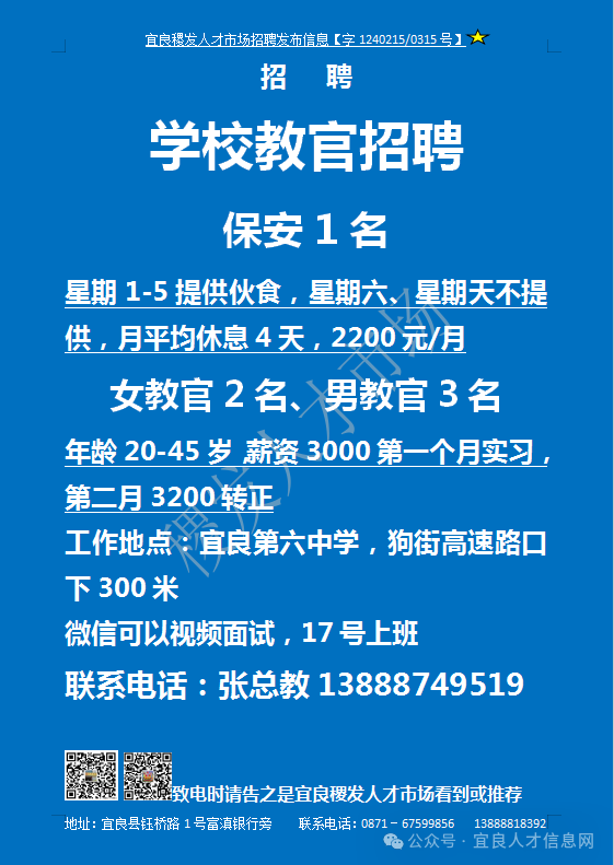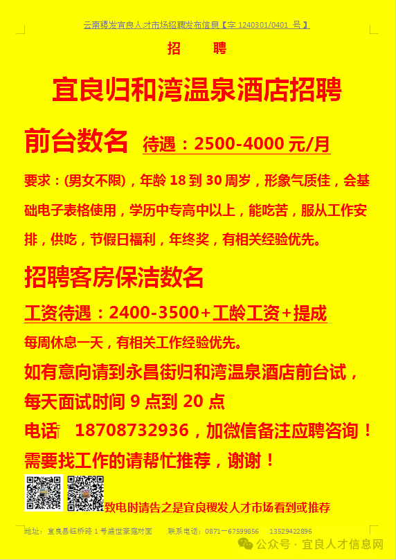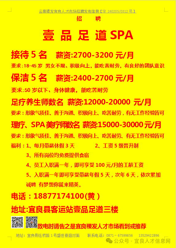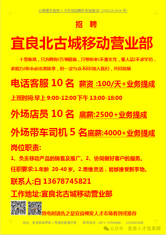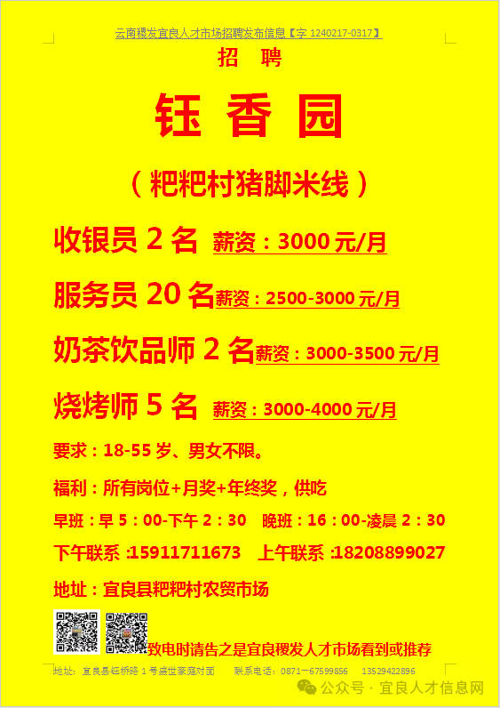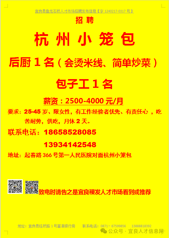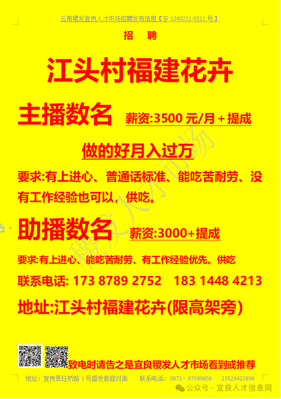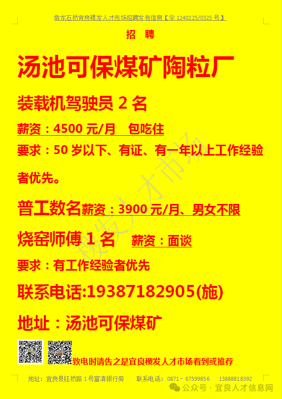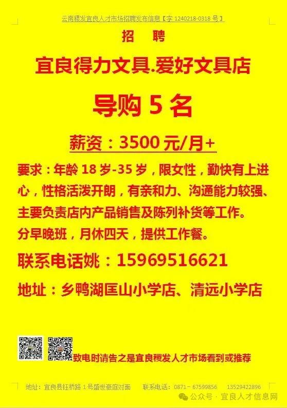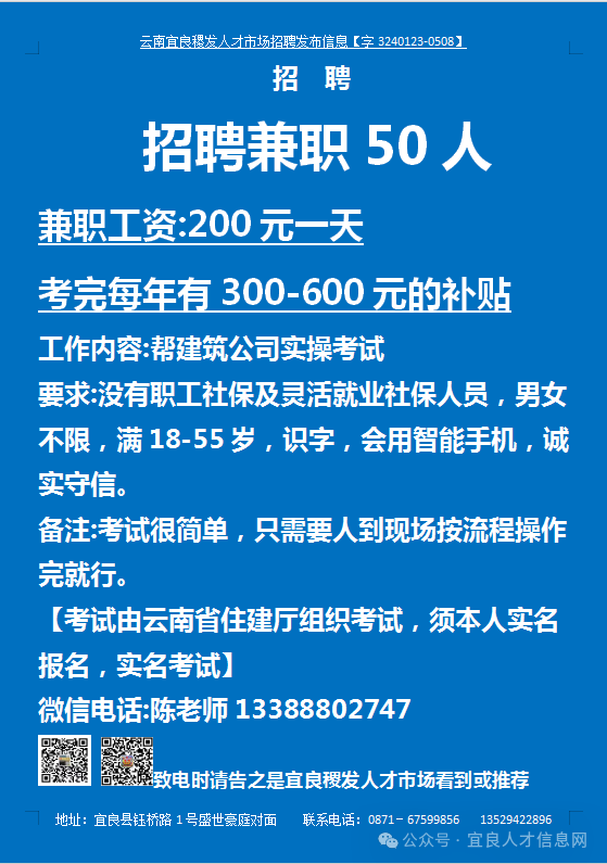 信息发布咨询地址:宜良稷发人才市场一楼大厅