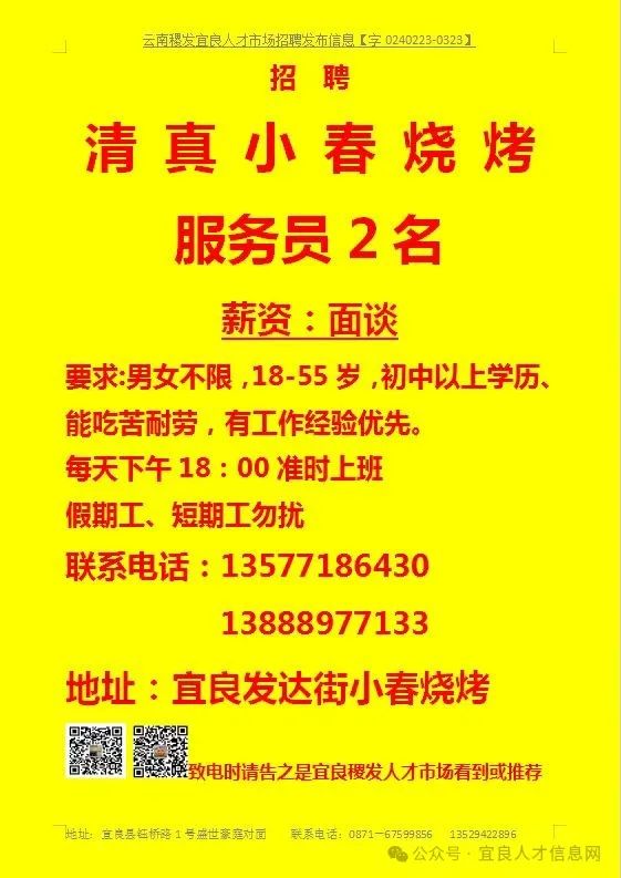 当前位置:首页>西北>【宜良本地招聘】(今日招聘)20240303期