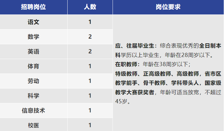 学校凭借教育家办学的独特优势,全面引入上海当代好课堂的教育理念,努力打造以问题设计为关键、以自主学习为基础、以探究合作为核心、以展示交流为特征的轻负担、高效率、优质化的现代课堂教学模式。1.遵守国家法律法规,具有良好的政治素质,遵守教师职业道德规范;2.具有与岗位要求相一致的专业,具有相应学科相应学段的教师资格证、具有正常履行职责的身体条件和心理素质;3.热爱教育事业,具有较强的创新能力、团队合作精神和职业使命感,认同学校办学理念,能胜任本学科教学工作;