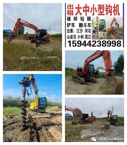 出租大中小型钩机,铲车,翻斗车等,可承接破碎、钻眼、打桩、挖土、打墓地等业务,同时出售江沙、河石、小料等,联系电话:15944238998(2024.2.7)