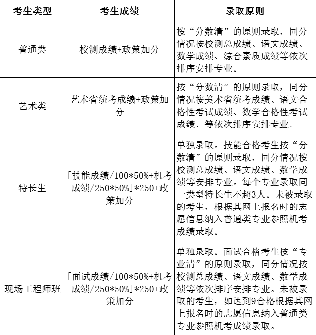 现场工程师班、体艺特长生项目仅能选择其一,不得兼报;如有重复报名者将取消其报名资格。
