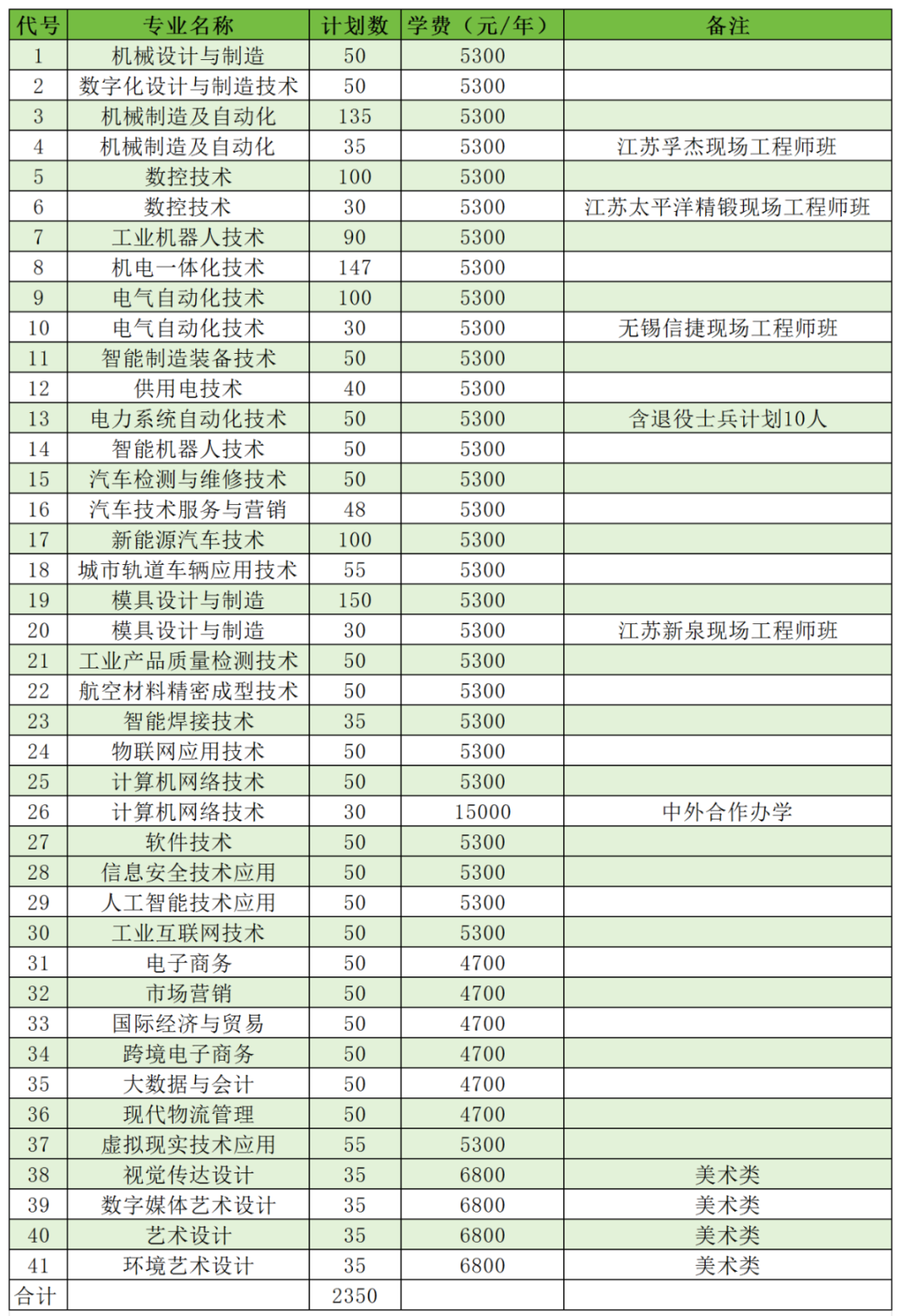 备注:具体招生专业及计划数以江苏省教育厅公布为准。