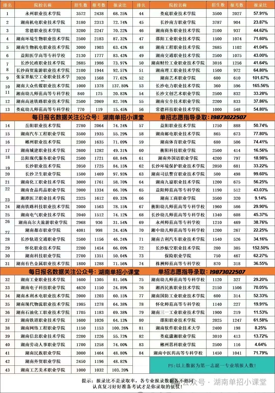 ▶ 湖南单招各学校录取率、高考最低控制线、单招分数线推荐学校