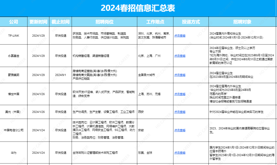 2024春招信息汇总表