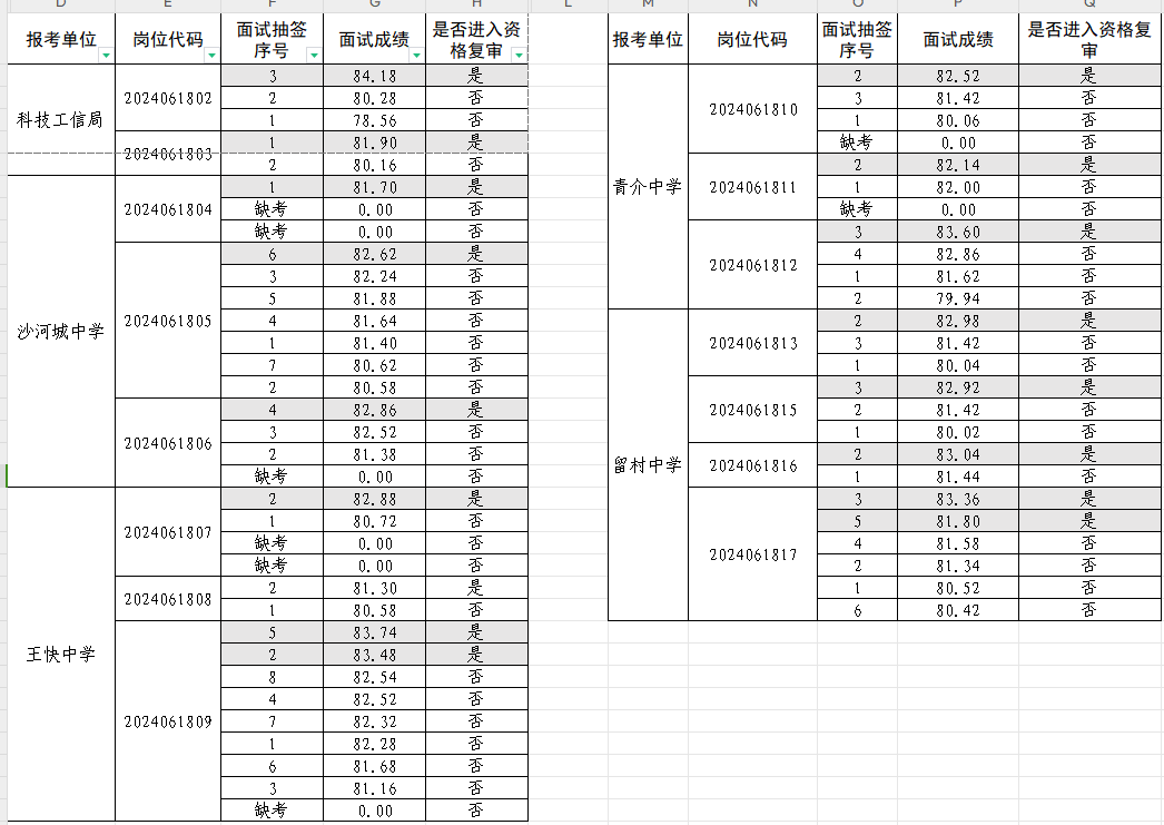2.资格复审通过的进入体检考察环节,审核未通过的取消资格,递补面试成绩下一名考生进入资格复审,审核通过的进入体检、考察环节。