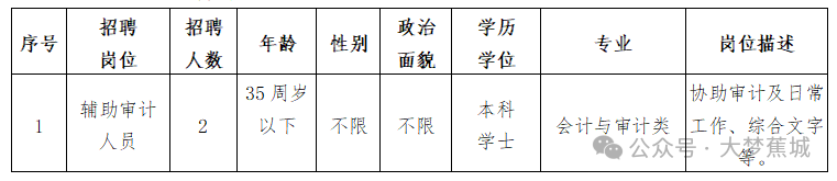 因工作需要,宁德市蕉城区审计局面向社会公开招聘编外人员2名,有关招聘专业、计划人数及条件要求等公告如下: