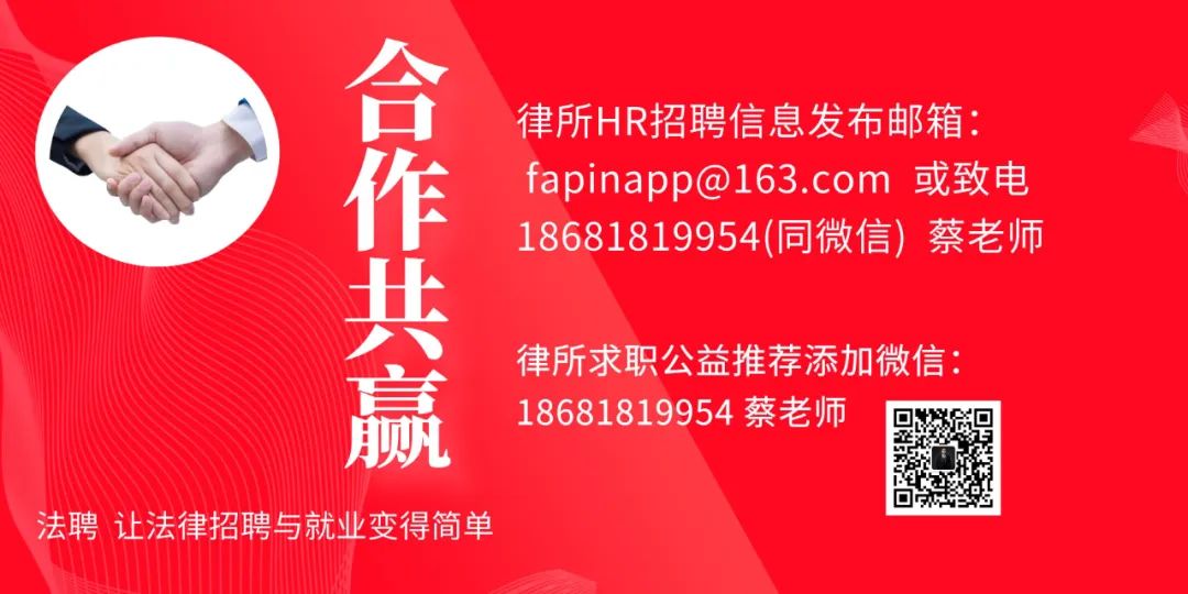 请将您的个人简历发送至:472734271@qq.com。并在邮件标题中注明:法聘推荐+姓名+岗位。如果您对我们律所发布的职位感兴趣,欢迎与我们取得联系,获得面试机会~~