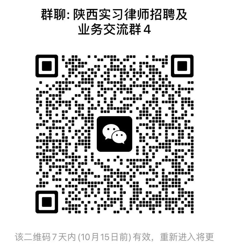 加入陕西实习律师招聘4群,可获取最新陕西律所招聘信息及资源分享交流,群满添加18681819954蔡老师微信,拉你入群。