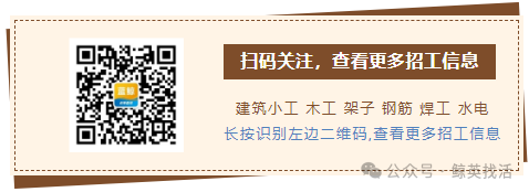 招工:北大街要木工6人,380,八个半小时,三天一结账,能干一个多月