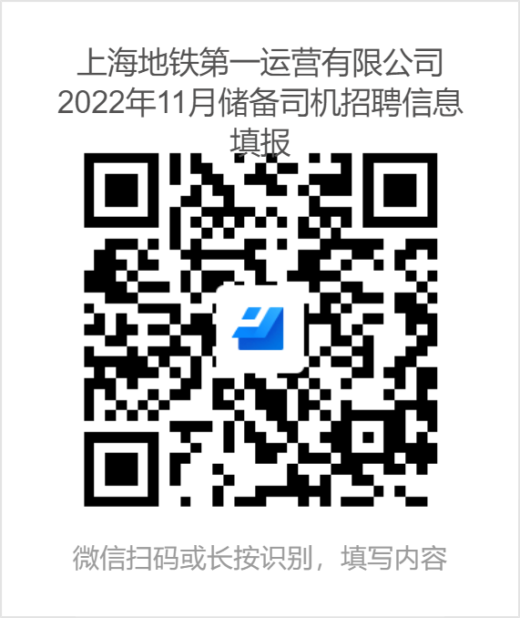 2、请于2022年11月11日17:00前填写报名信息(扫二维码),审核材料通过的应聘者公司将通过电子邮件形式shanghaimetro1_hr@163.com通知后续面试工作事项。