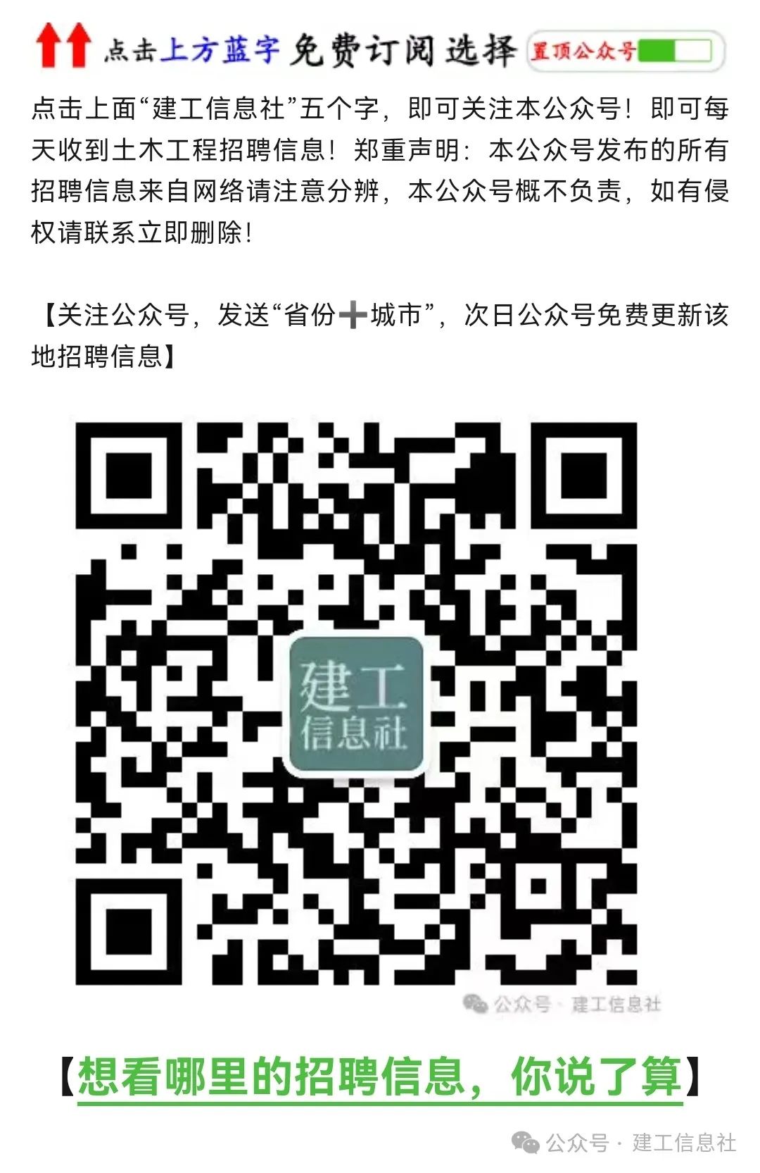 招聘要求:1、专科及以上学历,电力、水利、房建、市政、公路等专业;2、熟悉相关专业施工验收规范,熟悉建筑领域相关的法律、法政、政策;具备实践协调经验,能独立胜任工作;3、具有相关专业工程监理、施工、代建等项目经验;4、具有注册监理工程师证书,持有工程类中级及以上职称优先考虑;5、男性,年龄50周岁以下。