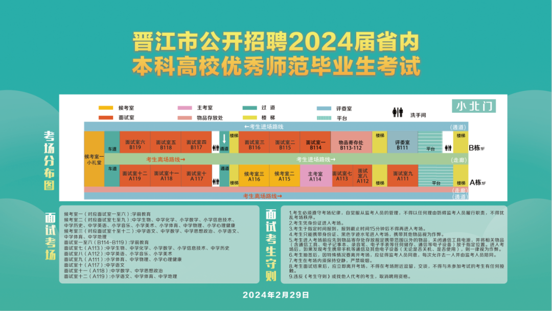 随着晋江教育事业的快速发展,对优秀教育人才的需求日益凸显,2月29日,晋江市公开招聘2024届省内本科高校优秀师范毕业生考试在我校顺利进行,此次考试由晋江市教育局主办,共设18个考场,465人参加考试。