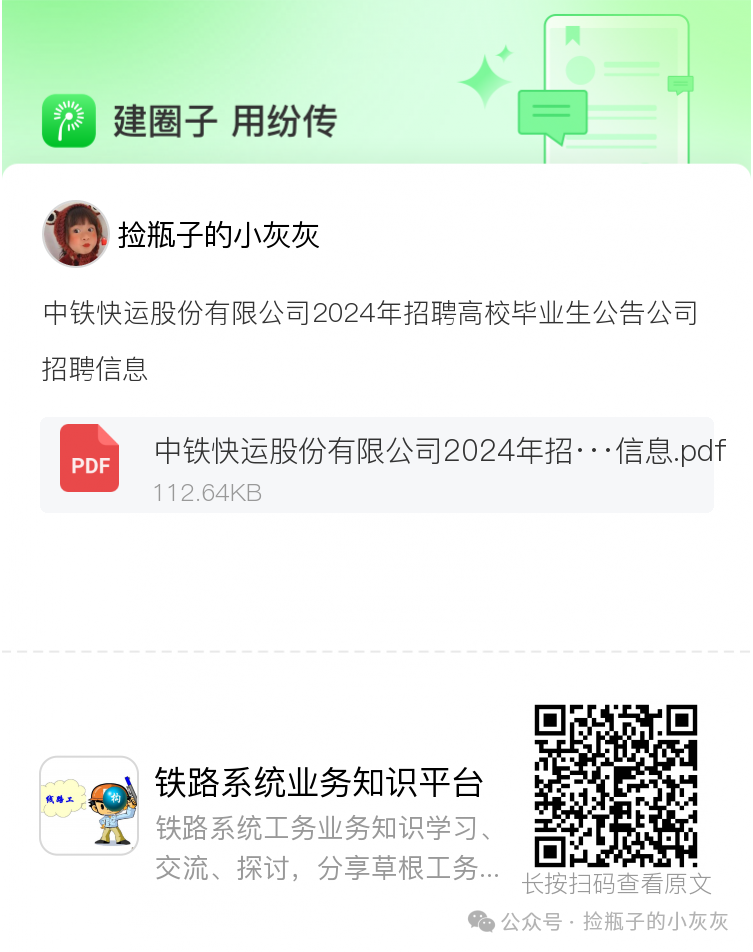 识别二维码即可下载中铁快运股份有限公司2024年度招聘应届高校毕业生需求信息表.pdf