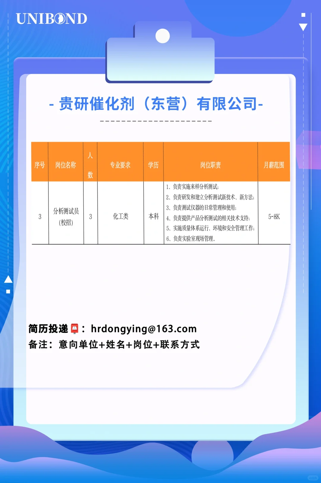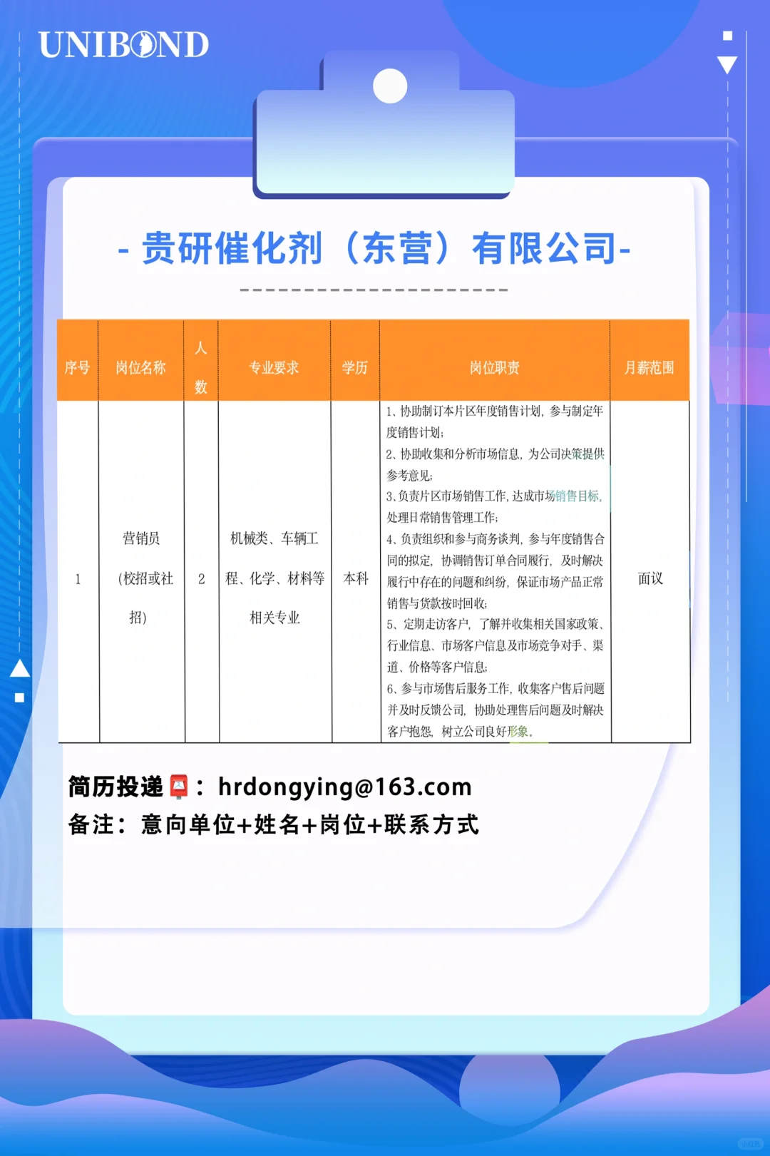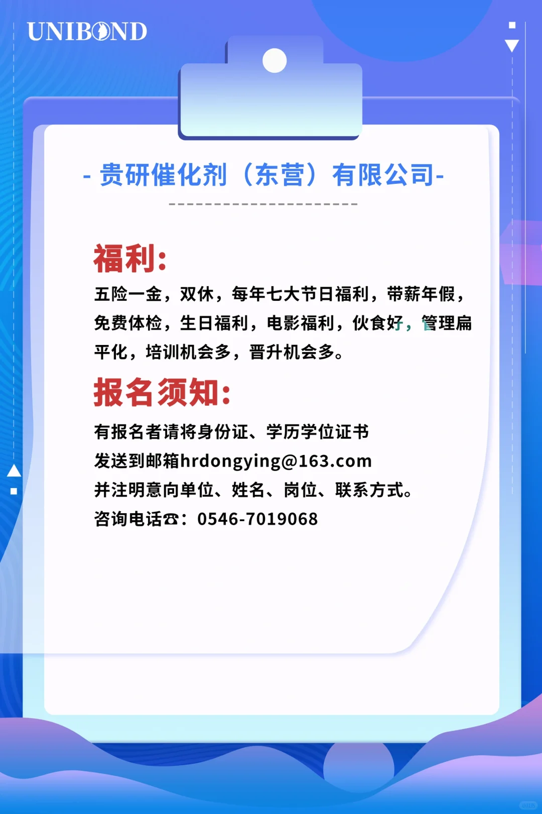 贵研催化剂(东营)有限公司持续招聘中!!!!