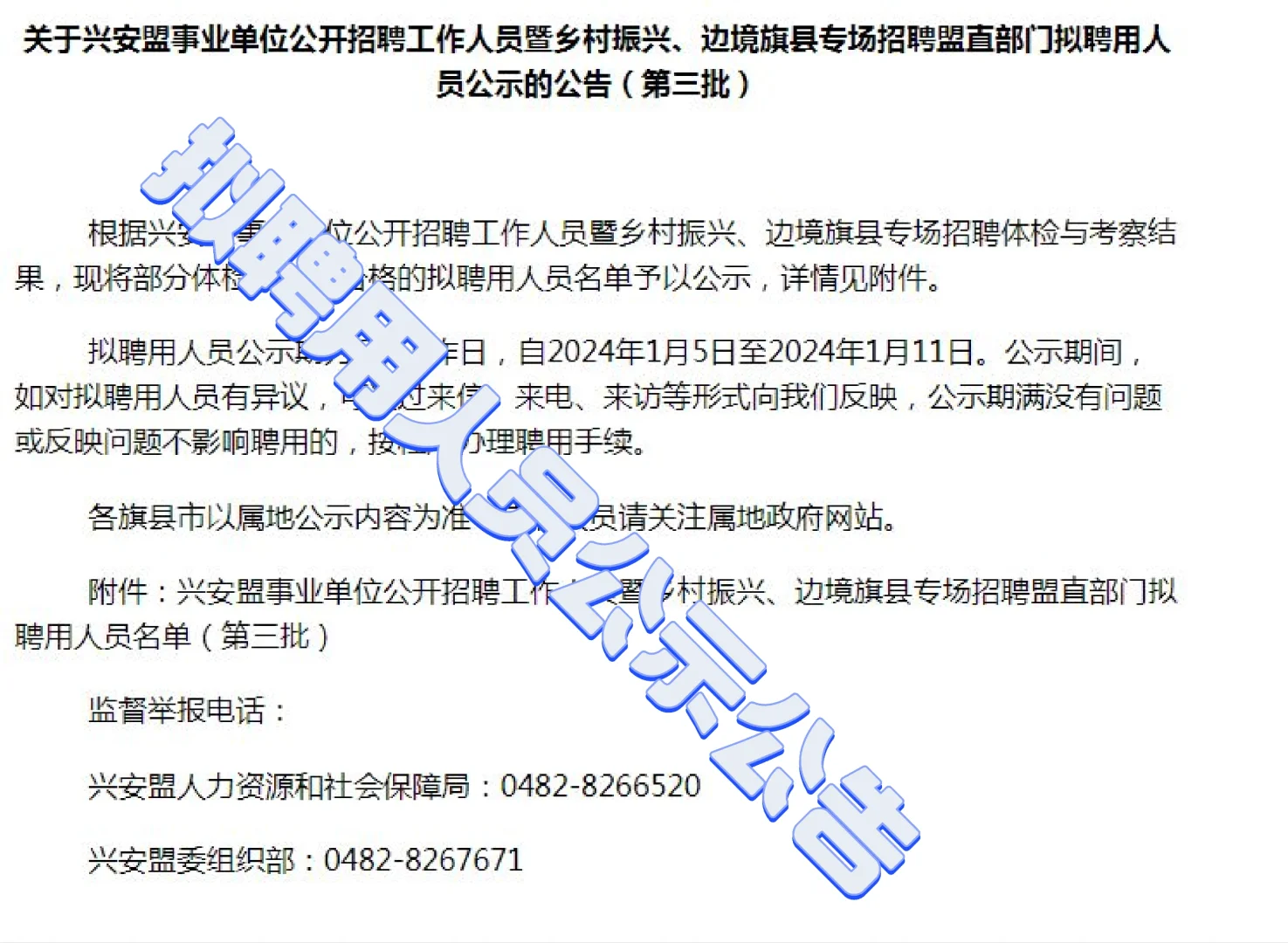 关于兴安盟事业单位公开招聘工作人员暨乡村振兴,边境旗县专场招聘盟直部门。拟聘用人员公示的公告(第三批)