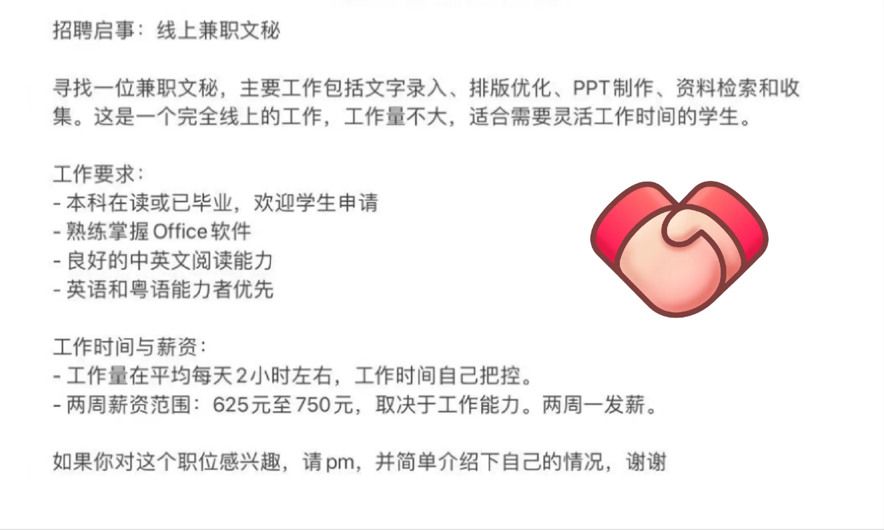 招聘个线上大学生文秘