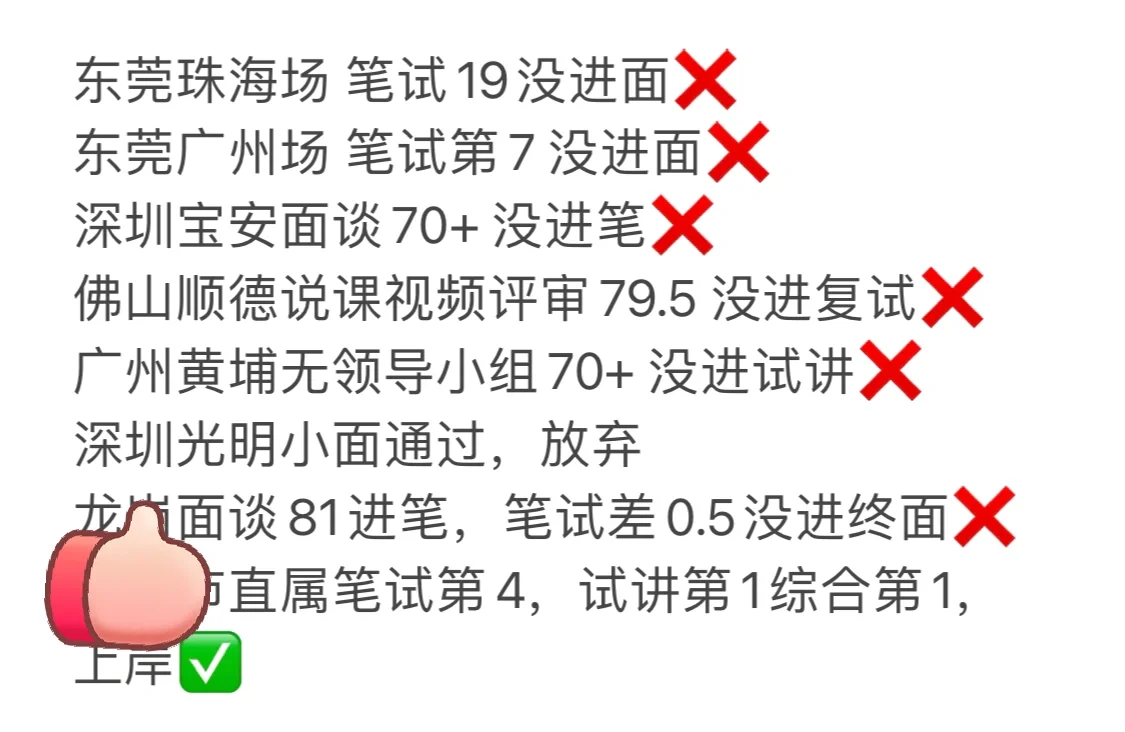 是i 人但要考教师编 一些面试的心态调整 #教师招聘考试 #i人面试 📮最近好些姐妹问 “我是xx学历考xx城市有希望吗?会不会被刷”“我面对考官就紧张 话都说不好” 可以先向内问自己 你期待我怎么回答 为什么会这样提问 你在担忧什么 如果我说你可以 你就可以笃定然后不自我怀疑吗? 考编不仅仅是对个人专业知识的考查 个人心态准备也很重要!你可能跑了好多场仍然没有上岸 可能开始内耗怀疑自己是不是适合当老师 可能有好几次就差一点点上岸 没关系啊大家都一样 重要的是怎么调整好心态哇! 💡图片是我今年秋招的过程 我害怕人多 尤其面对有权威的长辈更容易紧张 两年前因为考研复试紧张不断说车轱辘话 最后结果就是被一志愿刷掉 最终调剂才上岸 在那之后我不想再因为社恐错失重要的机会 跑招过程中我转变心态的tips: 1⃣️不要试图克服紧张情绪 我就是内向容易紧张的 我接纳它的存在 所以考场紧张的时候告诉自己:是的 我很紧张 没关系 它不会把我先前的准备偷走 2⃣️积极想象 还没开始考试为什么想象自己话都说不利索的情景呢?换个方向 想象你顺利的走进考场 从容大方的进行了测试 展现了自己的专业素养 面试顺利的进行着... 3⃣️究原因 过分紧张源于放大的“自我”。担心自己的某个回答不够好、讲述的过程磕巴了、是不是给人留下很差的印象,把面试过程中会正常出现的情况“灾难化”,但其实你没那么多观众,对于考官而言当天见了太多的考生,你那些“问题”他过了这场考试还记得吗?所以~ 不要试图完美 我们不是名师 只是即将毕业的新手教师 让考官看到 你有潜力成为合格的老师 就好 落落大方能打败95%的对手 4⃣️一点“xuan学”:无心生大用 考编的过程不要太想得到 没有什么是非你不可的 这场考不上 那就当作我和这个学校/这个区没有缘分 下次换个地方试试 当然 每次考完需要复盘 哪里做得好继续保持 哪里可以继续提升 做到战术上重视战略上藐视 你就是去上课展现自我的 不是去考试 如果你觉得换个头像 换张壁纸 去寺庙 能够有加持 那就去做 给自己积极的暗示(考试当天我和考友的闹钟是好运来 我两都上岸了🤣) 总之,接纳——积极想象——不需要完美——不是非要得到——命运自有安排 that’s all #教师考编 #教招面试 @薯条小助手 |