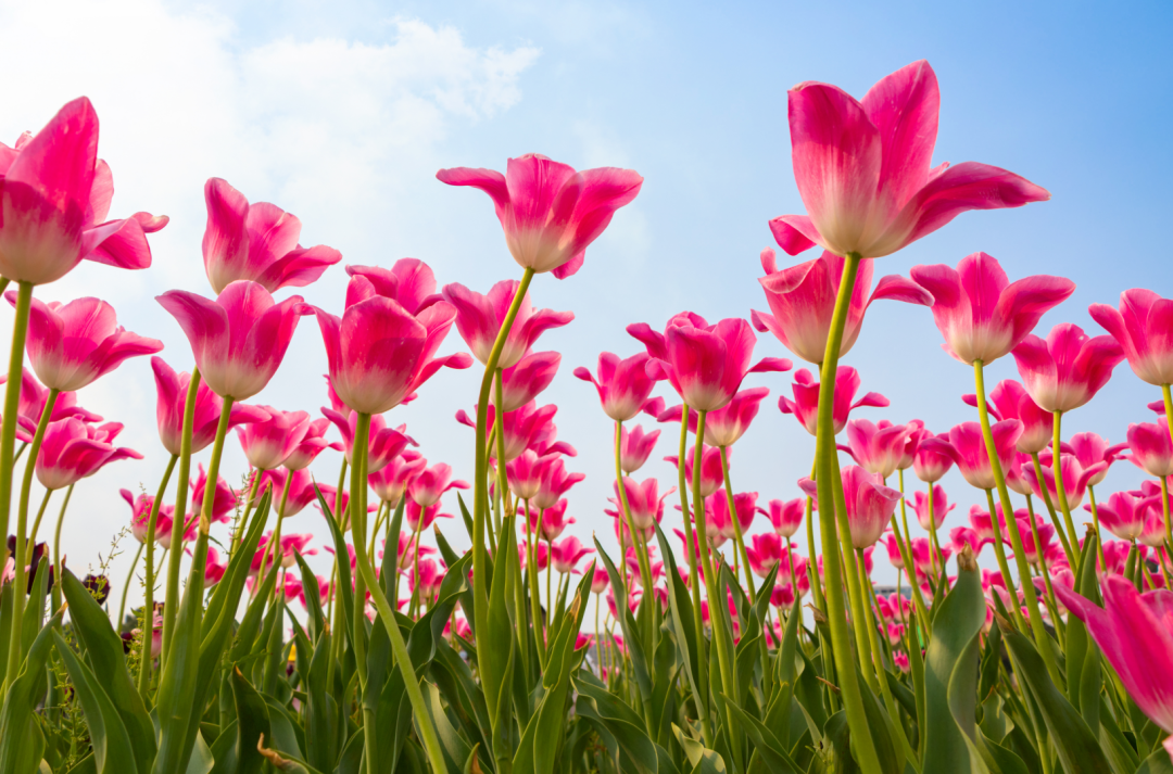 04 仰拍更震撼 主体高大,视角震撼 仰拍视角可以从另一个角度展示美景,比如拍摄满树繁花,我们可以把盛开的花朵和蓝天作为对比,带来强烈的视觉冲击力。