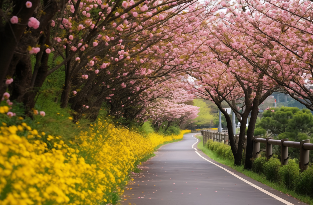 花朵作为前景衬托,可以使主体更突出。创造出层次丰富、视觉吸引的春天风景照。