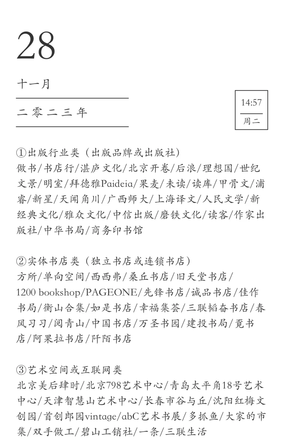 文化出版书店行业招聘信息怎么找 #不懂就问有问必答 如果想找一份文化出版书店行业的工作 除了在各个平台上投递意向单位,岗位例如营销编辑、书店店员、新媒体运营等 还有可以主动出击的路径 通常也可以直接关注文化出版行业或书店的社交媒体,然后定向咨询投递 今天给大家罗列一下(不完全收录) ①出版行业类(出版品牌或出版社) 做书/书店行/湛庐文化/北京开卷/后浪/理想国/世纪文景/明室/拜德雅Paideia/果麦/未读/读库/甲骨文/浦睿/新星/天闻角川/广西师大/上海译文/人民文学/新经典文化/雅众文化/中信出版/磨铁文化/读客/作家出版社/中华书局/商务印书馆 ②实体书店类(独立书店或连锁书店) 方所/单向空间/西西弗/桑丘书店/旧天堂书店/1200 bookshop/PAGEONE/先锋书店/诚品书店/佳作书局/衡山合集/如是书店/幸福集荟/三联韬奋书店/春风习习/阅青山/中国书店/万圣书园/建投书局/覔书店/阿果拉书店/阡陌书店 连锁书店用人需求会大一些 独立书店用人需求相对小,需要密切关注 ③艺术空间或互联网类 北京美后肆时/北京798艺术中心/青岛太平角18号艺术中心/天津智慧山艺术中心/长春市谷与丘/沈阳红梅文创园/首创郎园vintage/abC艺术书展/多抓鱼/大家的市集/双手做工/碧山工销社/一条/三联生活 多关注其文化活动,可实地参与了解空间规模,活动形式和投递方式。 想了解更多出版行业资讯可以评论互动。 @人文薯 #笔记灵感 如果想找一份文化出版书店行业的工作 除了在各个平台上投递意向单位,岗位例如营销编辑、书店店员、新媒体运营等 还有可以主动出击的路径 通常也可以直接关注文化出版行业或书店的社交媒体,然后定向咨询投递 今天给大家罗列一下(不完全收录) ①出版行业类(出版品牌或出版社) 做书/书店行/湛庐文化/北京开卷/后浪/理想国/世纪文景/明室/拜德雅Paideia/果麦/未读/读库/甲骨文/浦睿/新星/天闻角川/广西师大/上海译文/人民文学/新经典文化/雅众文化/中信出版/磨铁文化/读客/作家出版社/中华书局/商务印书馆 ②实体书店类(独立书店或连锁书店) 方所/单向空间/西西弗/桑丘书店/旧天堂书店/1200 bookshop/PAGEONE/先锋书店/诚品书店/佳作书局/衡山合集/如是书店/幸福集荟/三联韬奋书店/春风习习/阅青山/中国书店/万圣书园/建投书局/覔书店/阿果拉书店/阡陌书店 连锁书店用人需求会大一些 独立书店用人需求相对小,需要密切关注 ③艺术空间或互联网类 北京美后肆时/北京798艺术中心/青岛太平角18号艺术中心/天津智慧山艺术中心/长春市谷与丘/沈阳红梅文创园/首创郎园vintage/abC艺术书展/多抓鱼/大家的市集/双手做工/碧山工销社/一条/三联生活 多关注其文化活动,可实地参与了解空间规模,活动形式和投递方式。 想了解更多出版行业资讯可以评论互动。 #出版 #出版社 #招聘 #找工作 @人文薯 |