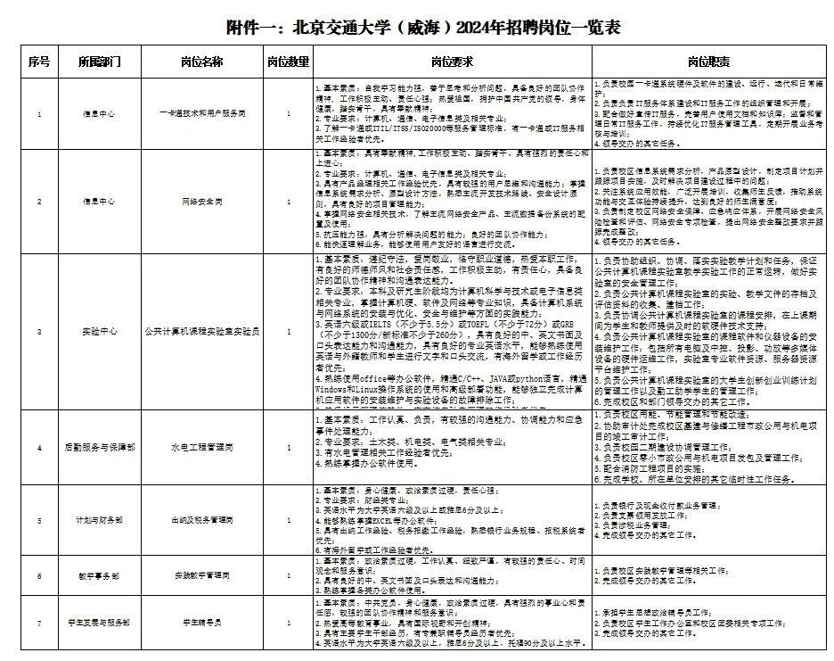 具体岗位及要求见岗位表