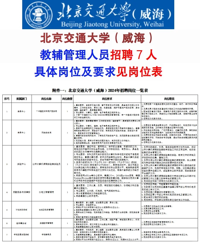 教辅管理人员招聘7人