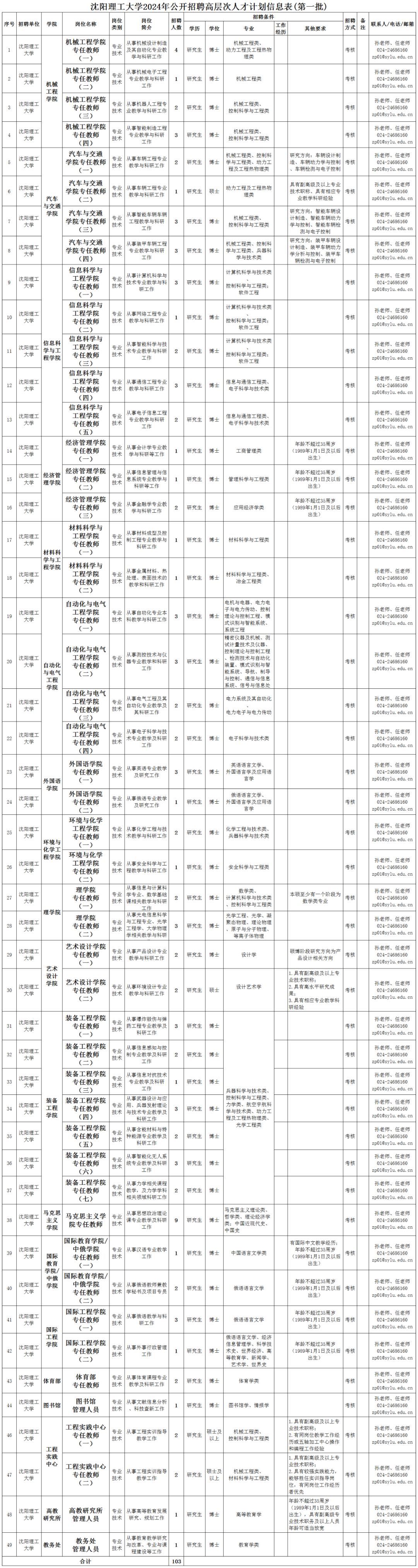 沈阳理工大学2024年公开招聘103名高层次人才公告(第一批)