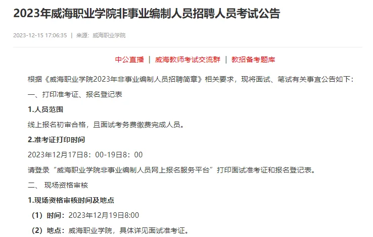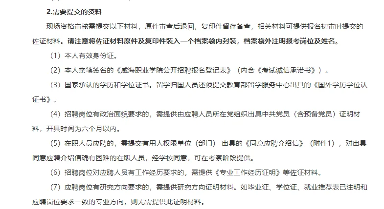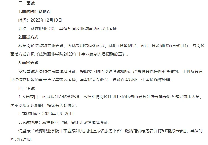 2023年威海职业学院非事业编制人员招聘