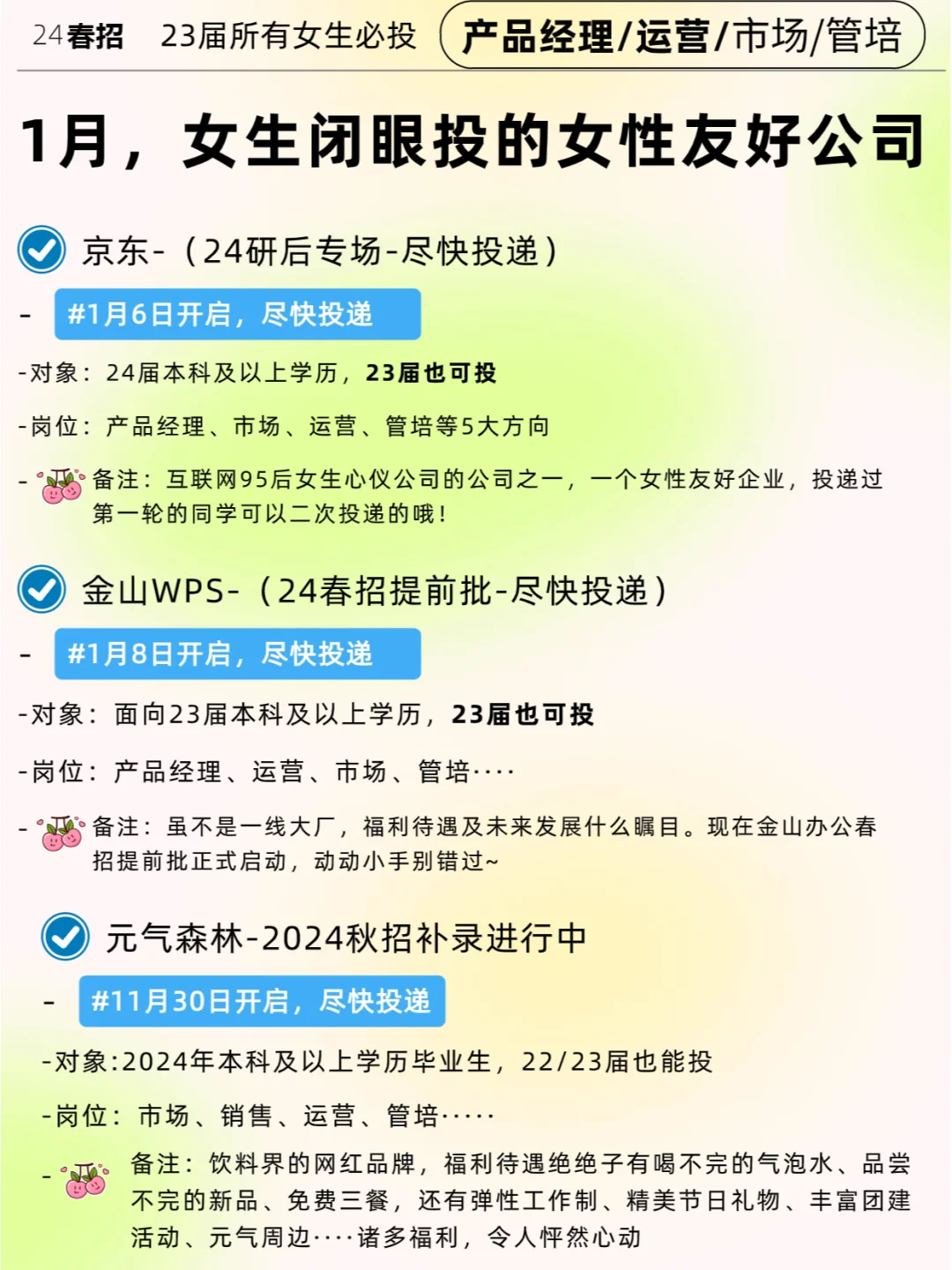 1月迎来春招提前批小高峰,有很多女性友好企业。