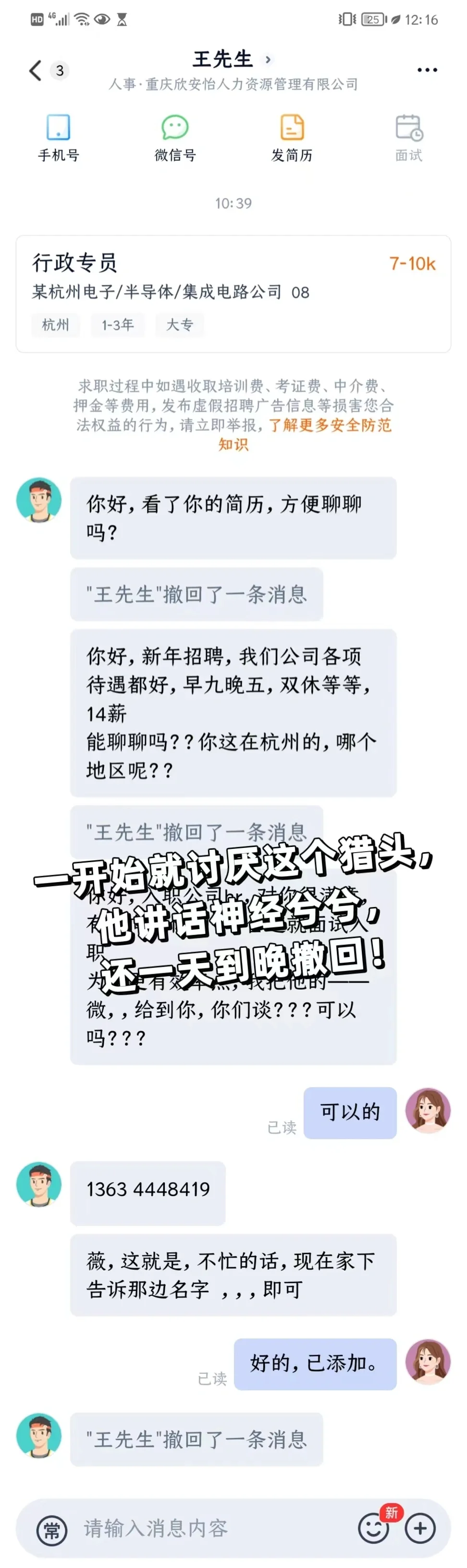 真的好无语!我之前一直在投我原本的工作岗位,但是都是十条送达一条已读的无回应状态。今天想说实在不行随便找点工作做做先,就试着投了一下行政文员这种。