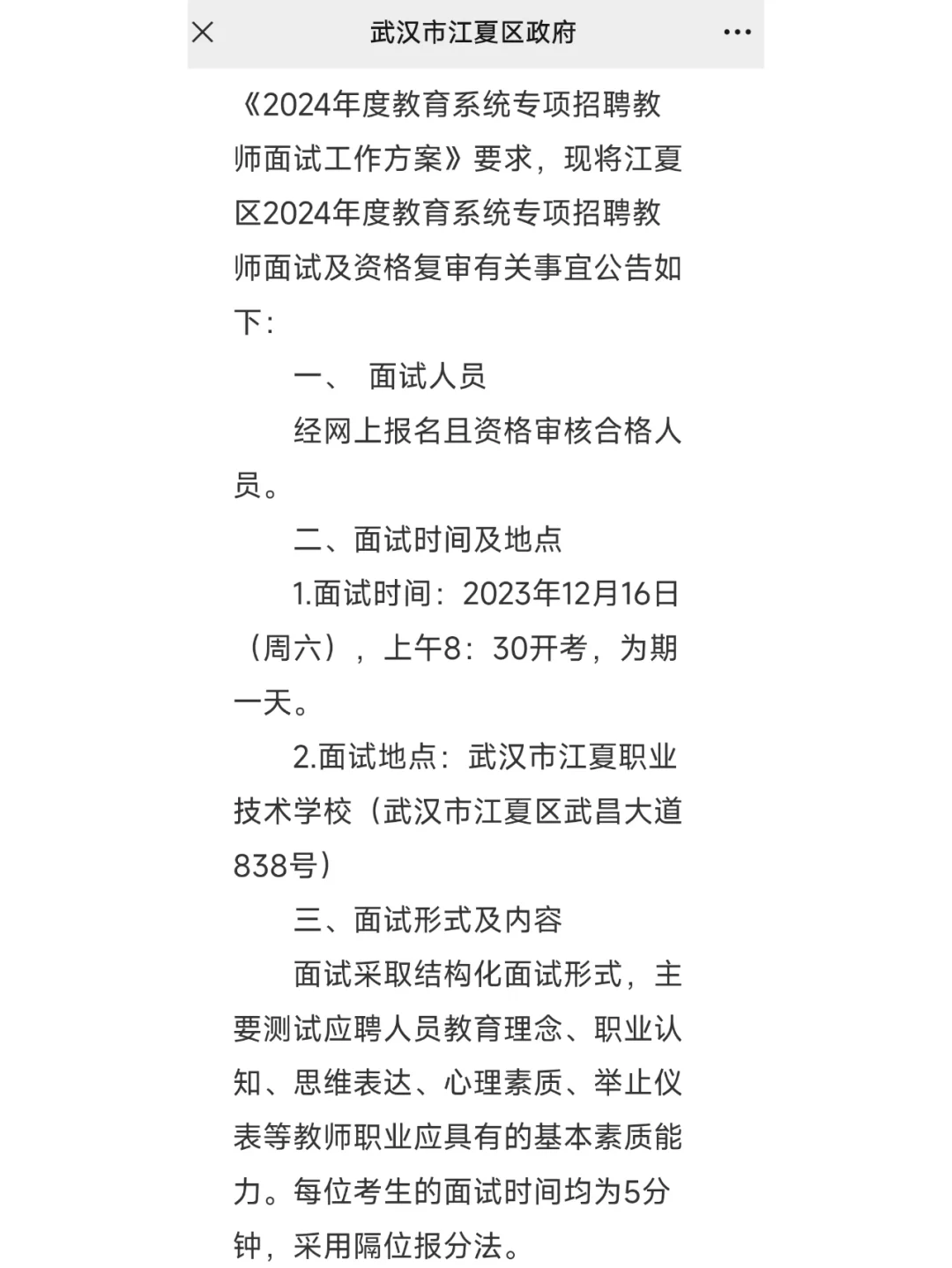 面试地点:武汉市江夏职业技术学校(武汉市江夏区武昌大道838号)