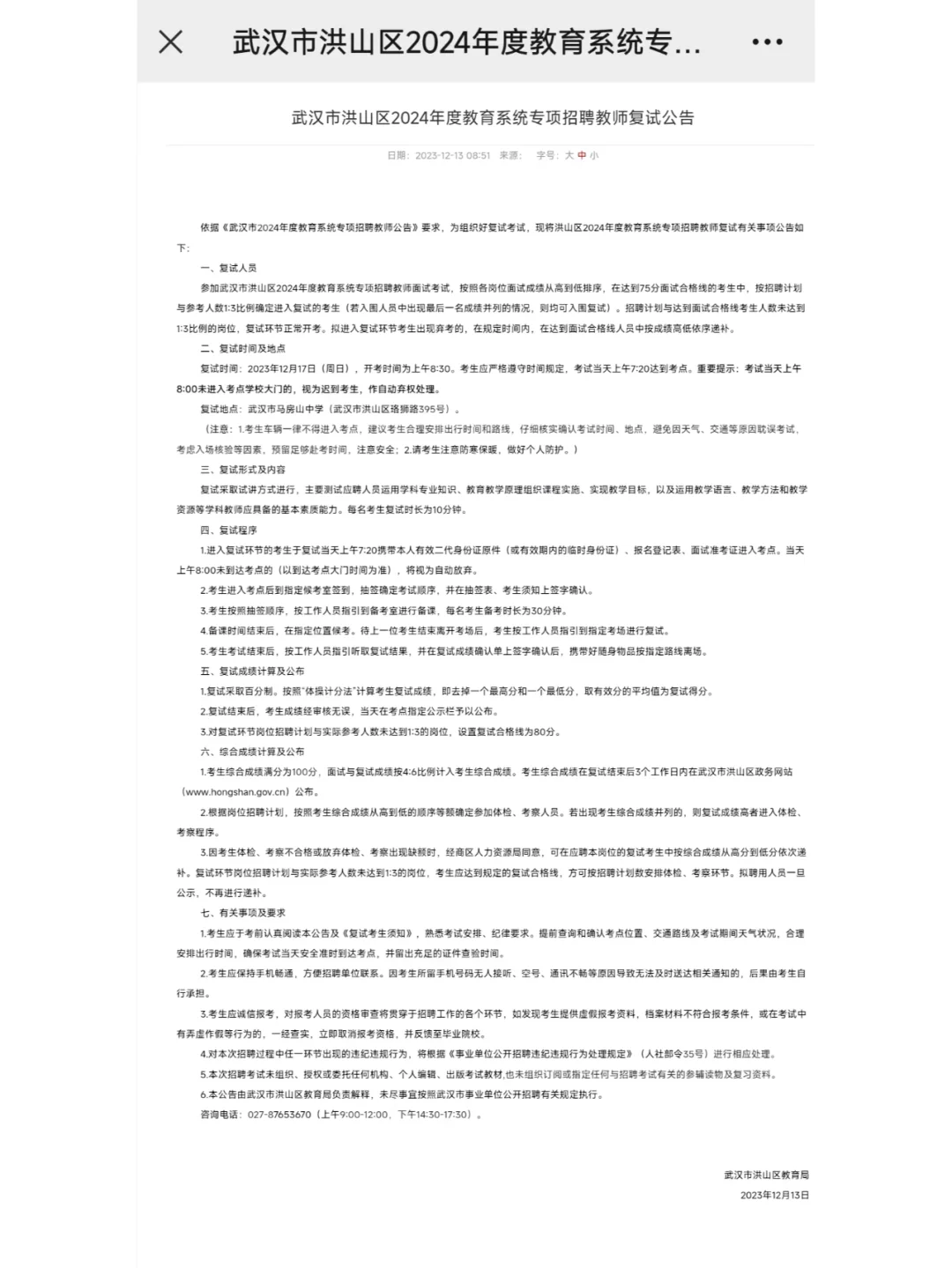 面试地点:武汉市马房山中学(武汉市洪山区珞狮路395号)