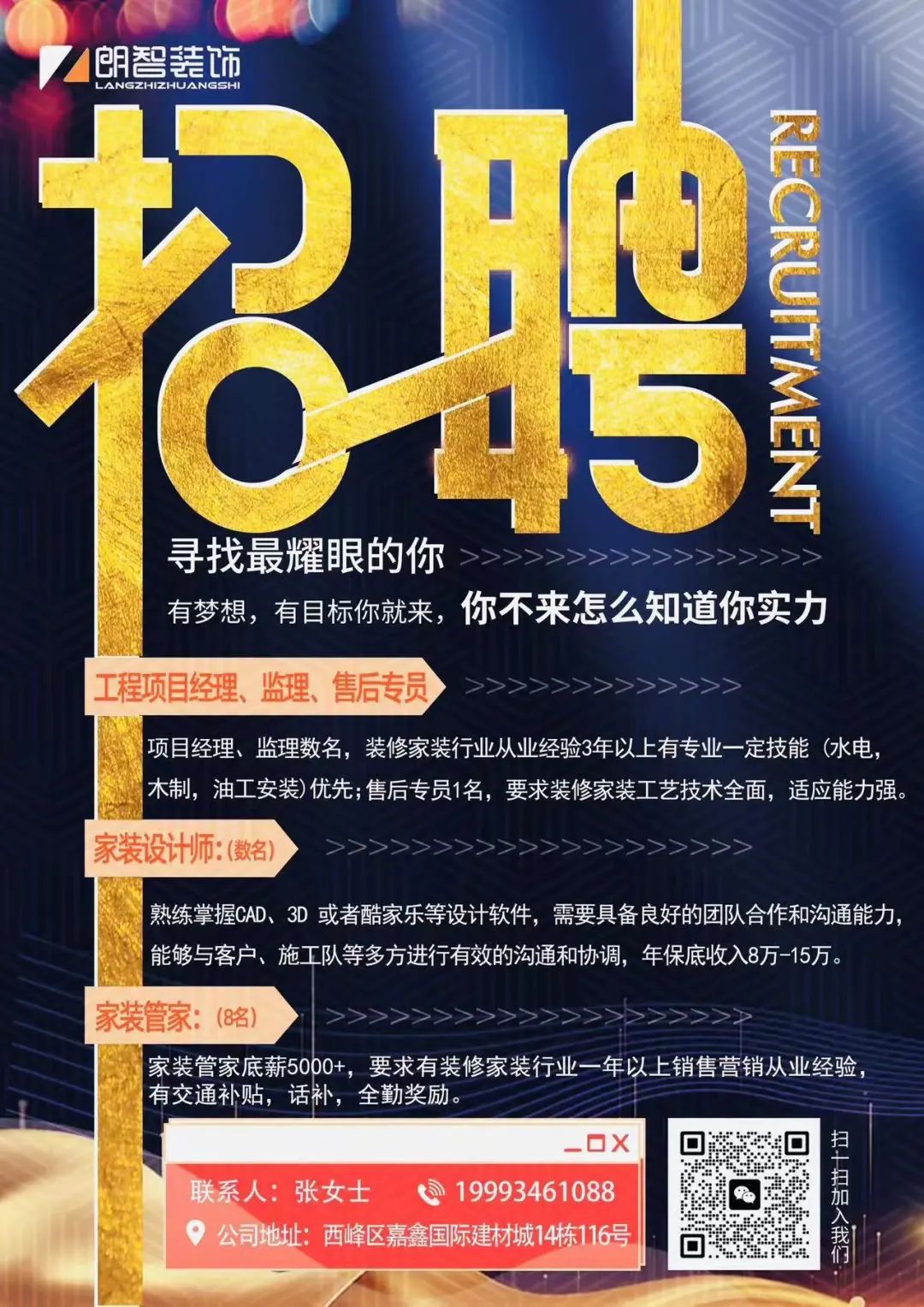 庆阳朗智装饰工程有限公司根据业务发展需求,现面向社会招聘英才正在寻找那个与众不同的你,期待你的加入!春暖花开等你来!