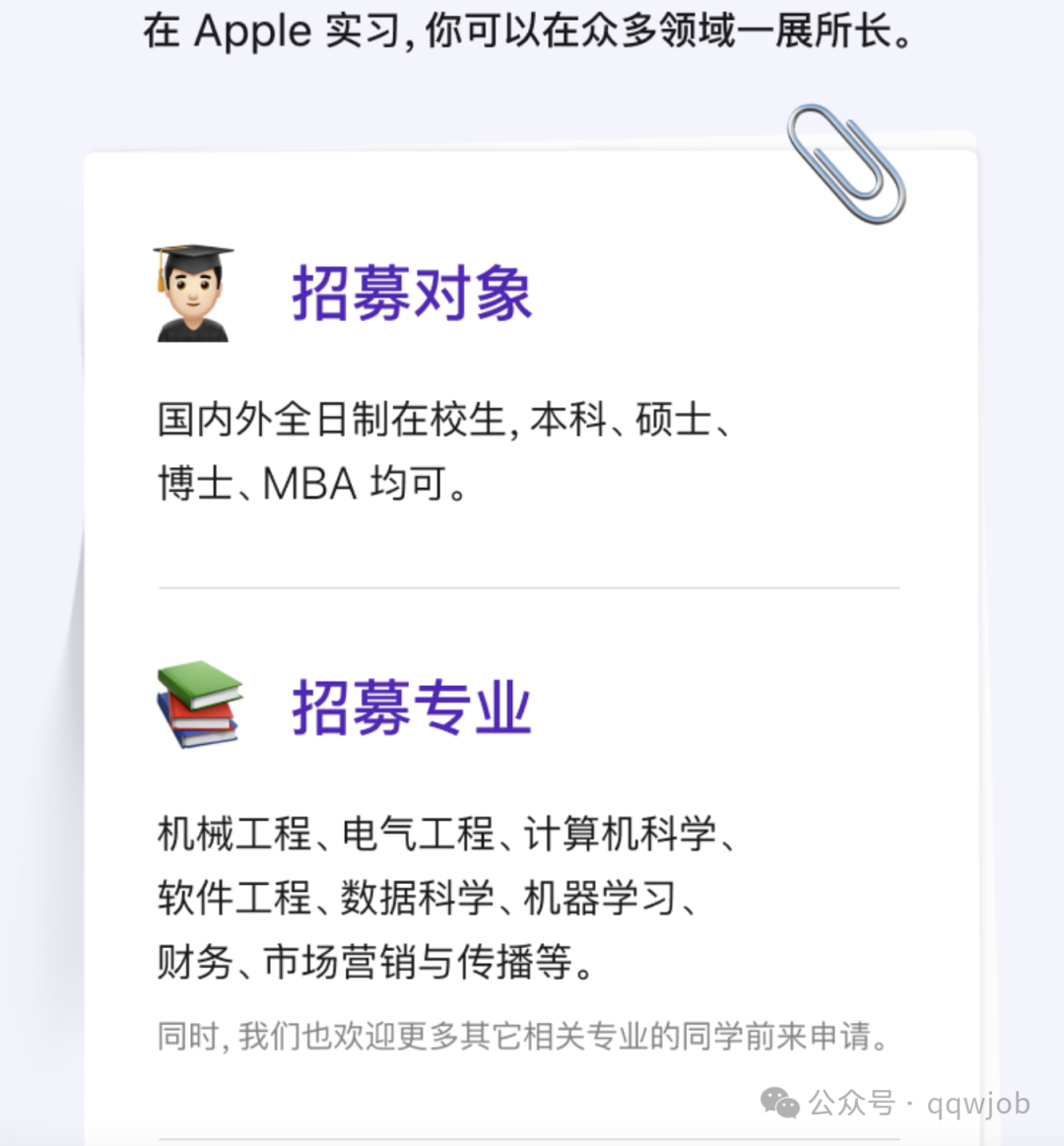 关注“Apple招聘”微信公众号查看详情。