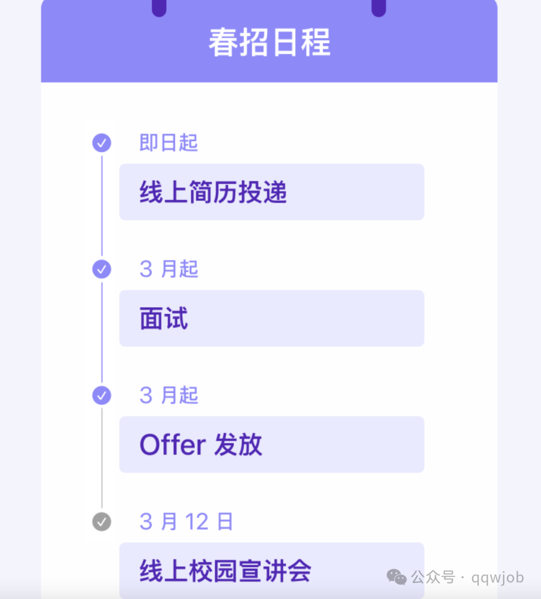 青青湾求职现已组建校招微信群,想定期收到招聘信息、求职指导的同学,回复关键词“校招”。