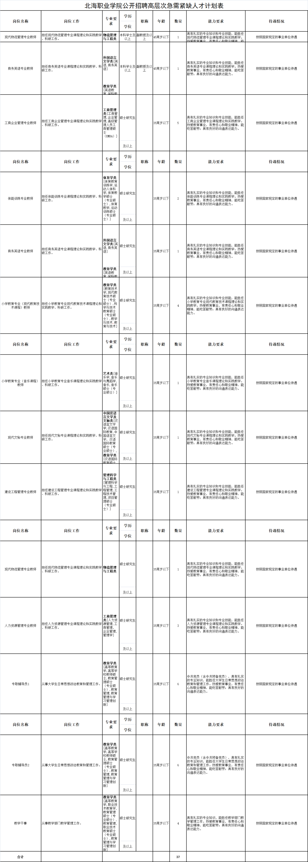7.岗位具体要求详见《北海职业学院公开招聘高层次急需紧缺人才计划表》(以下简称《计划表》)。