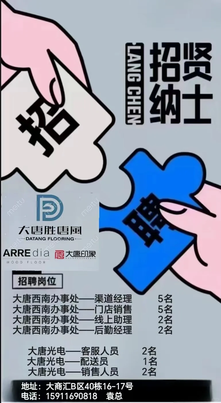 大唐西南办事处✨✨因业务拓展现招聘:渠