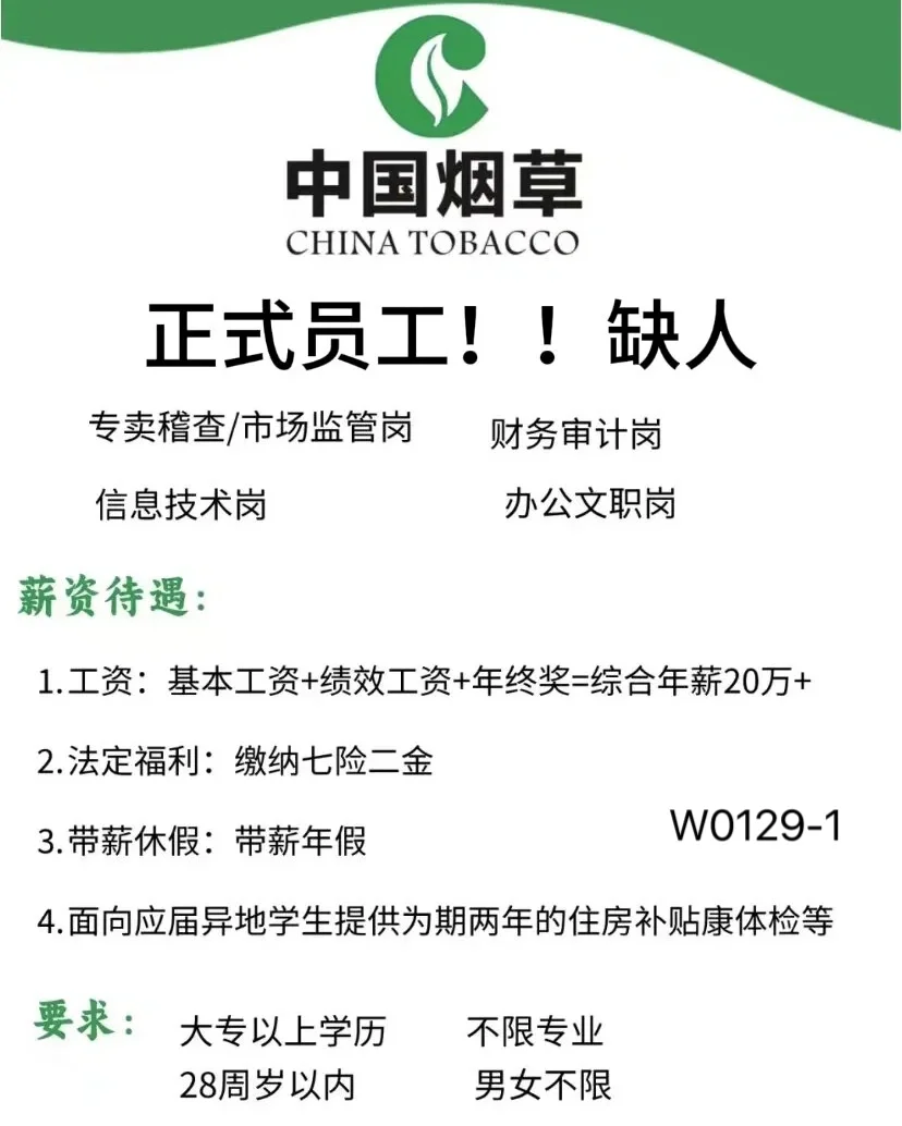 而且部分岗位还面向22~24届同学,不限专业,这周的烟草新岗位给大家整理好了,大家抓紧投起来,预祝大家早点上岸!✅✅✅