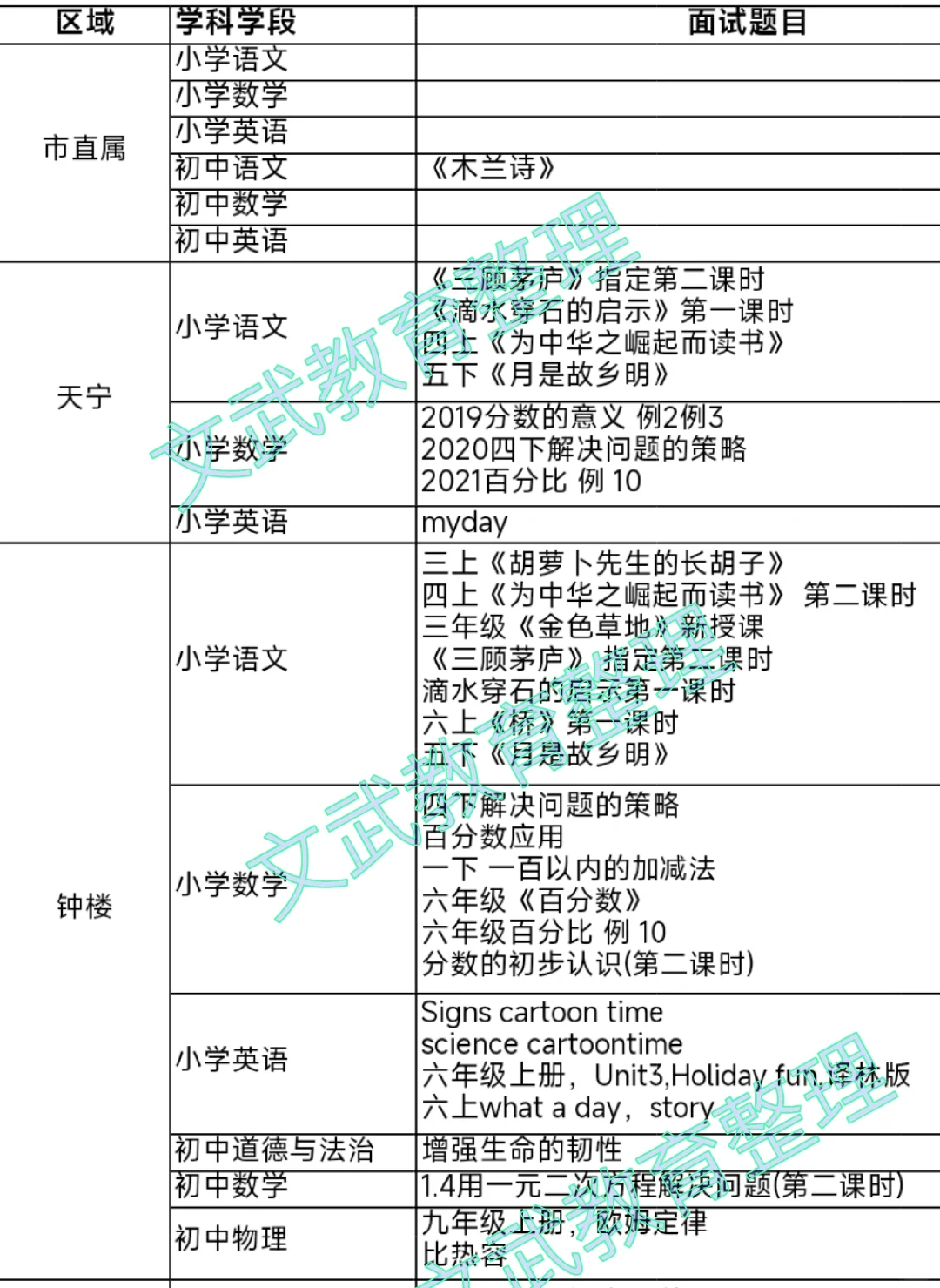 常州教师编制面试由报考区自行组织,除了溧阳面试是说课形式,其他区都是试讲。