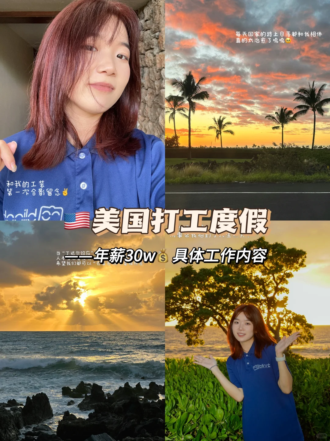 26岁裸辞|赴美打工年薪30w的工作究竟如何❓ 先说下我的个人情况:20年双非本科毕业,专业是广告学。19年大三暑期参与SWT,在阿拉斯加Hilton做housekeeping,3个月赚到4w➕,实现在美免费生活。本次参与的是ITP,时长1年,拿到年薪30w的offer。先前在国内头部知识付费平台做运营,目标找美国marketing/ operation/ social media相关工作,从报名到出发着手准备了大半年的时间(具体时间线可看主页合集📒) . 🇺🇸赴美专业实习ITP(Internship/ Trainee Program USA):34周岁以下毕业生可申请,持J1交流访问学者签证。 . 👩🏻💻我的职位: Studio Marketing&Opreations Intern(市场运营) . 📍坐标: - 美国夏威夷州 - 在度假酒店lobby有独立办公室 - 工位面朝大海,非常nice . 💻日常工作: - 工作室日常事务(处理email&摄影师排期&客户预定) - 对接客户,沟通选片相关业务 - 酒店大型活动修图工作&售卖(会有tips) - 工作室ins的文案撰写更新 . 💰时薪:22💲(约RMB 160) - 工资发放是每两周一次 - 月薪大概是3000💲左右(约RMB 2w2) . 💼工作时间: - 每天工作8小时,有1h的午餐时间,15min的break time - 每周不超过40小时工作,有两天day off . 🏨食宿: - 公司提供免费自助午餐(图4) - 公司提供公寓(图9)和车,每月房租500💲(包含水电) . ❤️一些有用的小Tips: - ITP不同于SWT,配岗需要和大学专业/工作经验进行匹配 - 全年可申请,一般商科/酒店岗位会比较多,其他类型需要拉长时间线慢慢等 - ITP项目时长有12个月和18个月选择 - 拿到offer后会有2-3个月时间用于办签证等相关事宜 - 有个人实习培训计划,有半个月的培训期 - 夏威夷安全系数相对于本土高很多 - 全英工作环境,get海外经历,简历加分 . 我是26岁裸辞 赴美打工度假gap的鱼仔🐟 更多赴美分享可在主页查看合集📒 其他问题or想了解的,欢迎底部问,记得follow我鸭!💕 #gapyear #夏威夷 #美国打工度假 #海外生活 #出国打工 #我的找工作日记 |