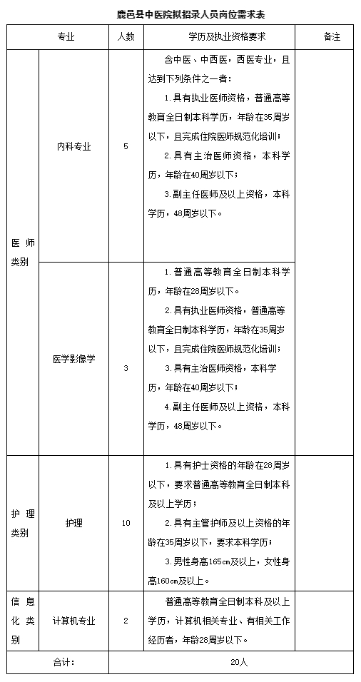 3月1日,鹿邑县人民政府网站发布《鹿邑县中医院2024年春季卫生专业技术人员招聘公告》,公告显示此次招聘拟面向社会公开招聘专业技术人员20名。招聘岗位,报名时间、方式,考试时间等内容如下:
