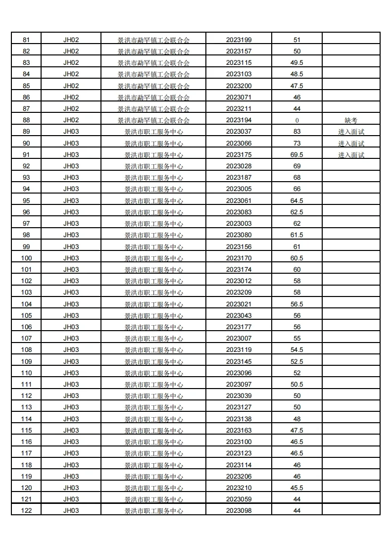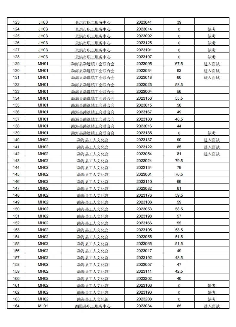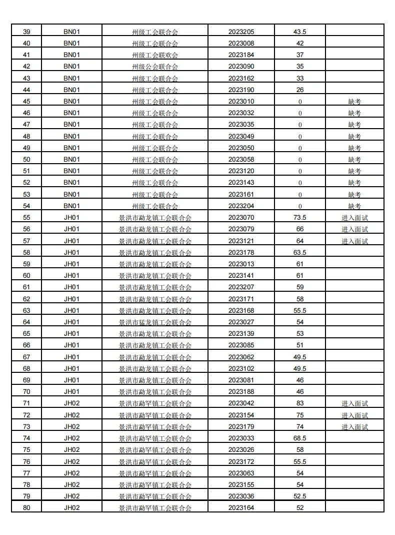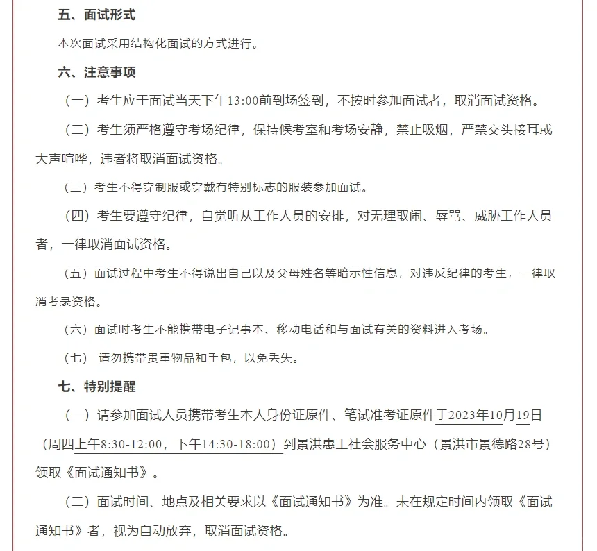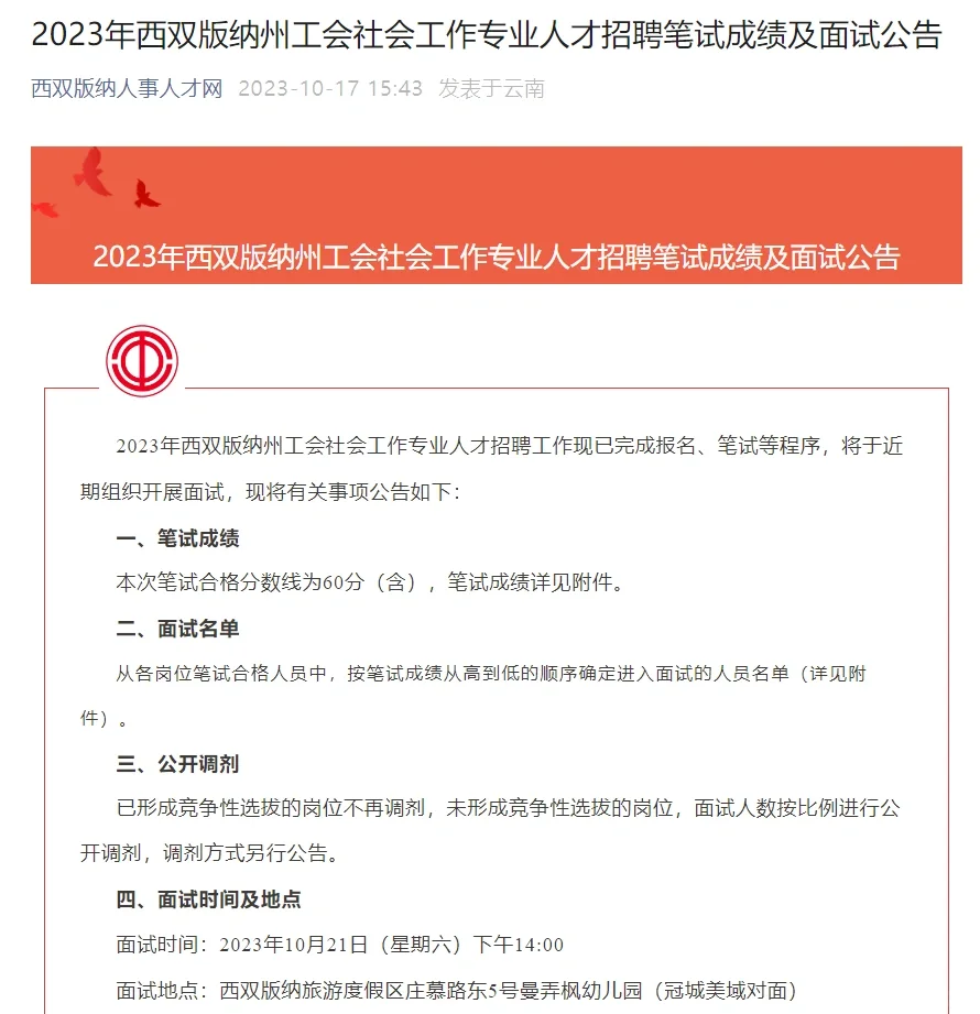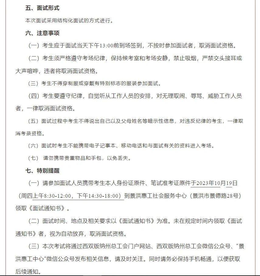 版纳工会招聘面试公告