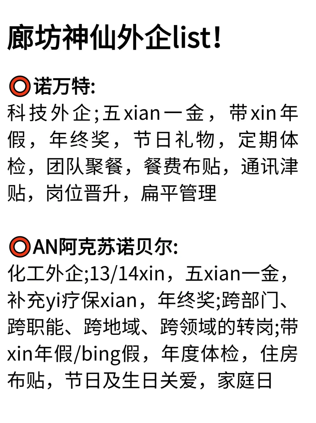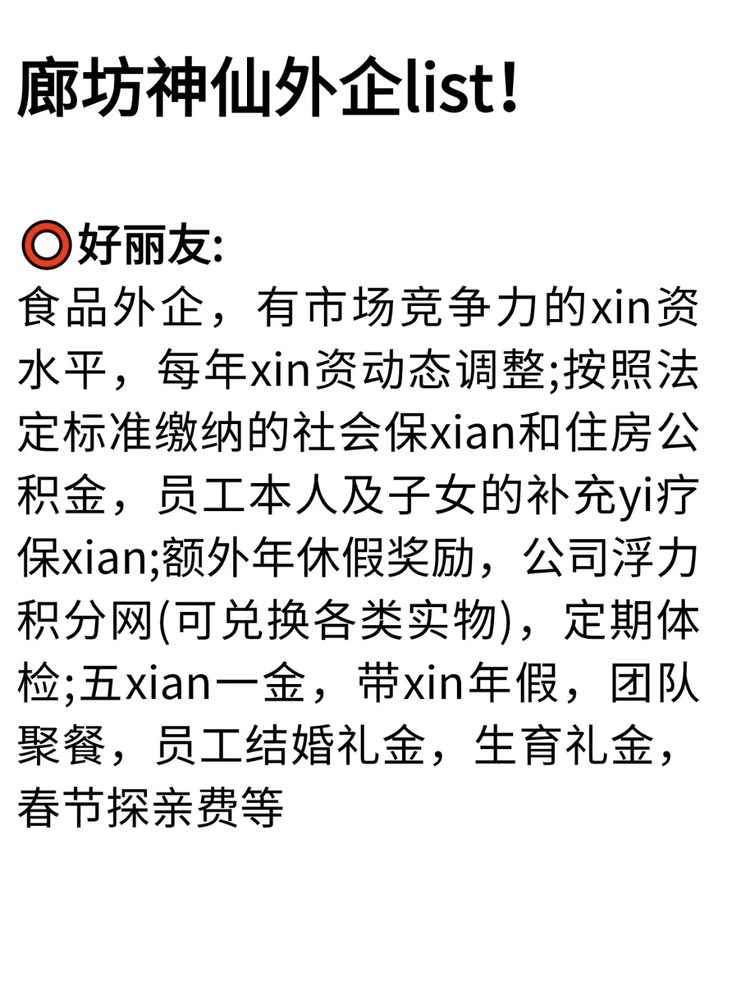 ⭕️P2-P4为大家整理了廊坊的一些神仙外企,均整理自企业招聘信息~