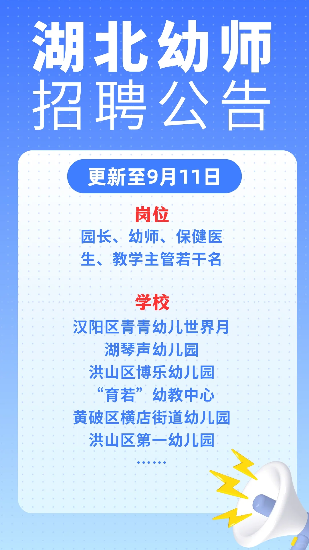 湖北幼师|23年9月11日幼儿园教师招募公告