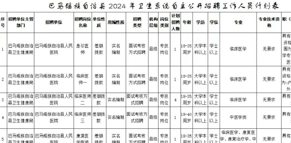 还有河池卫生系统招人等岗位表