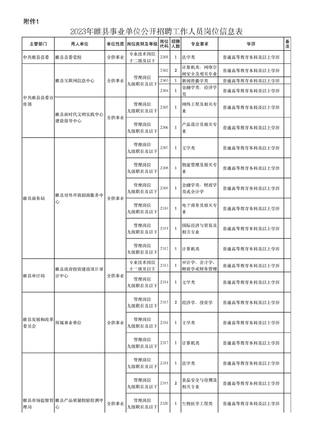 ‼️2023年商丘睢县事业单位公开招聘工作人员60人公告