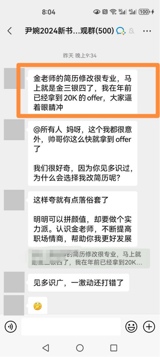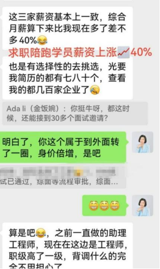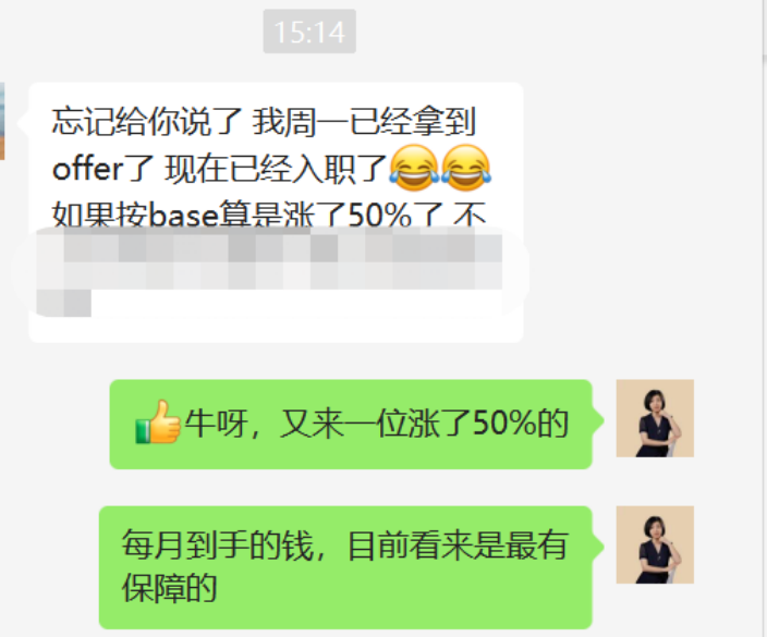 我在辅导1023名伙伴找到好工作后,把谈到你能力范围内最高价的谈薪秘诀,总结成为了《用三三法则谈薪的人都赚翻了》 用上了这个谈薪方法的伙伴,跳槽涨薪20%都太普通,很多人涨薪50%,薪资翻倍,最高的一人涨了340% 当然你只知道这一点还不够,如果你想在谈薪中立于不败之地,可以到我的拿offer陪跑计划内部秘籍当中查看《谈薪掘金3.0》 这个大招,能让HR给你定薪时,不敢压价,还会以最快的速度为你争取更好条件 当公司跟你确定薪资后,你依然可以争取更多,不必担心把offer谈崩,甚至在一开始的时候,你嘴快把薪水报低了,也可以用这招挽回 ![]() (如果你觉得今天的文章对你有所启发,希望你现在就可以分享给你3个最好的朋友) 嗨,我是金饭婉,一名高薪职业发展顾问,我来了……